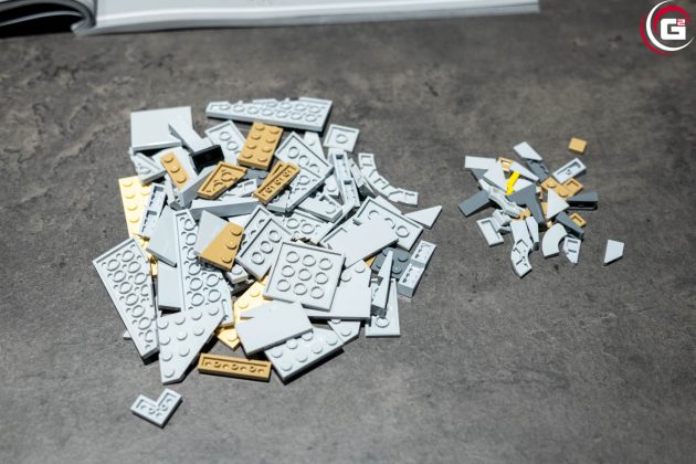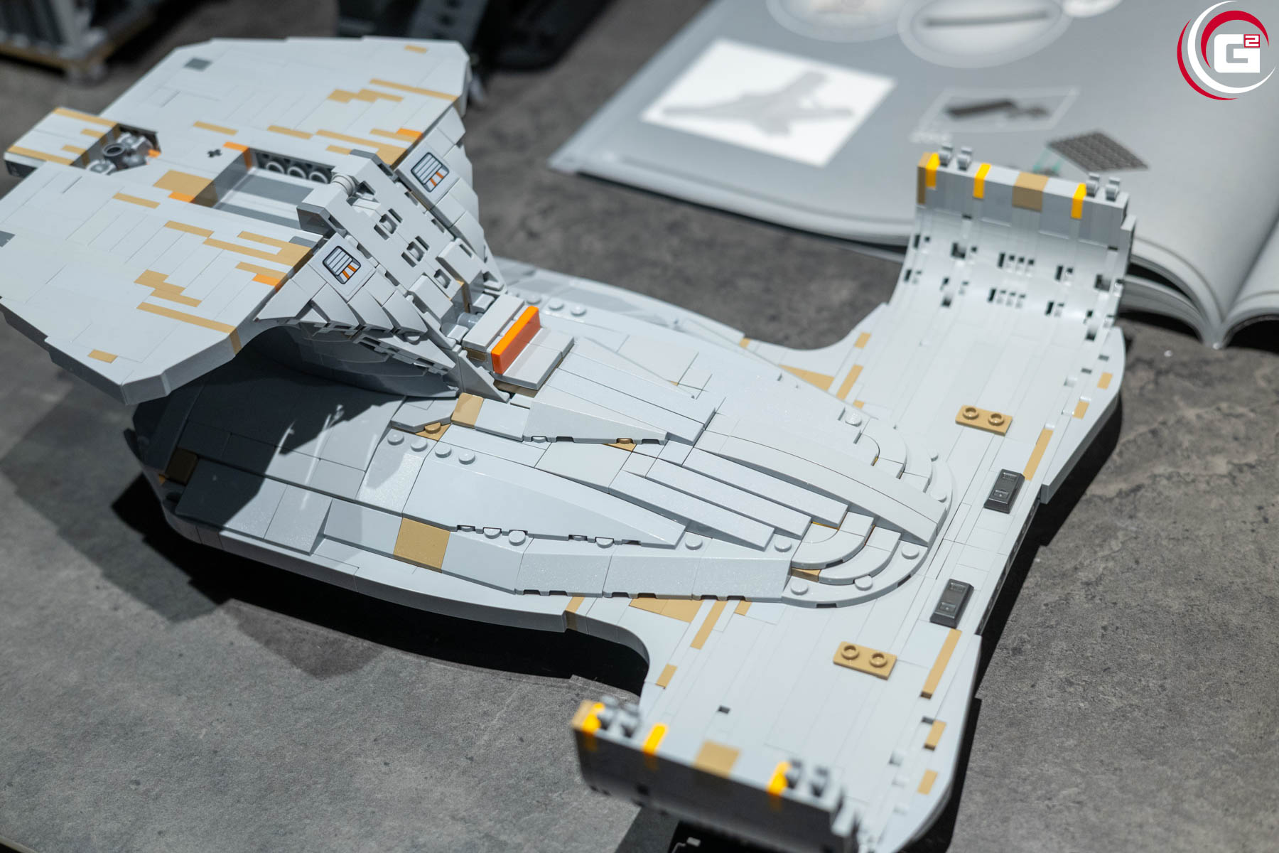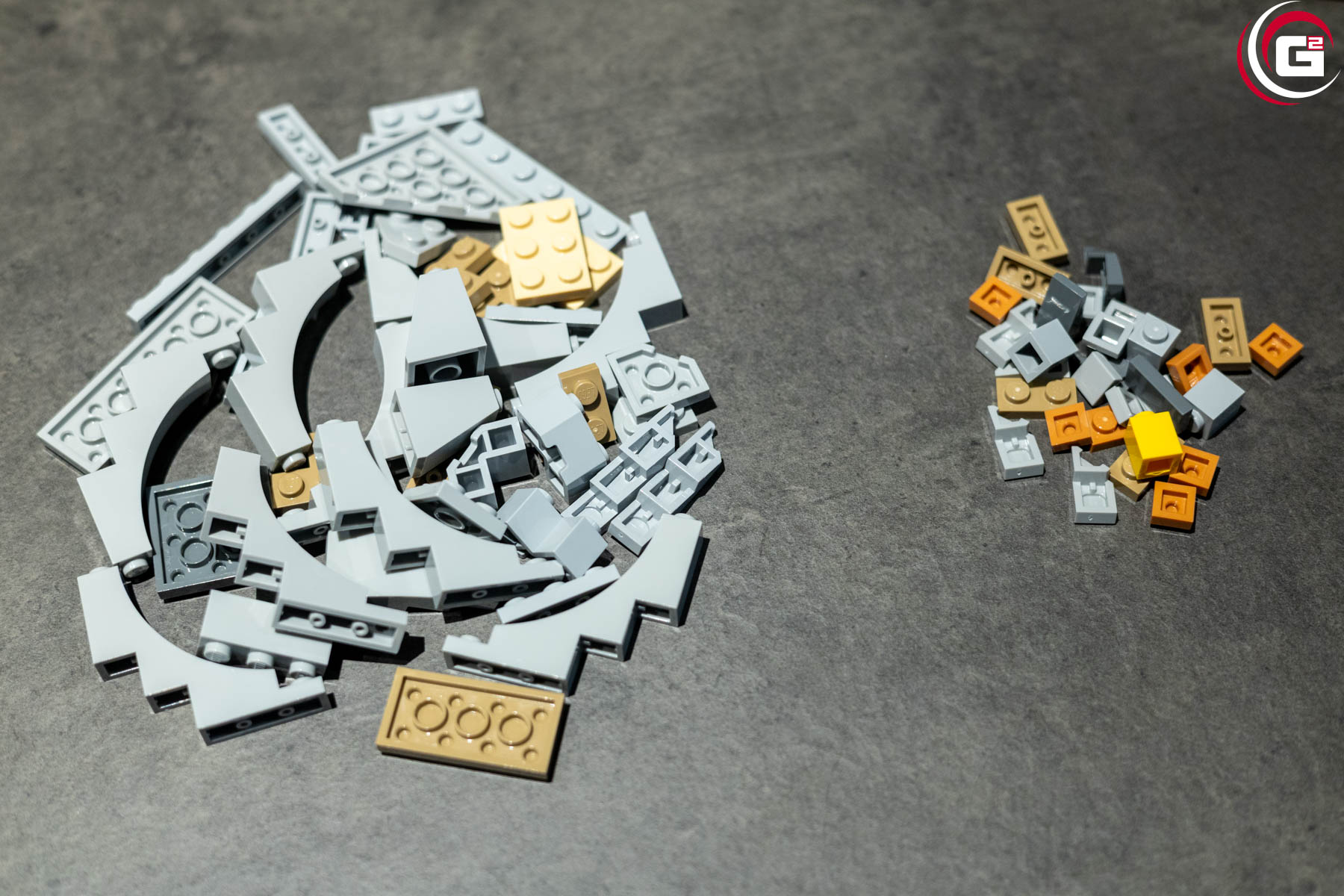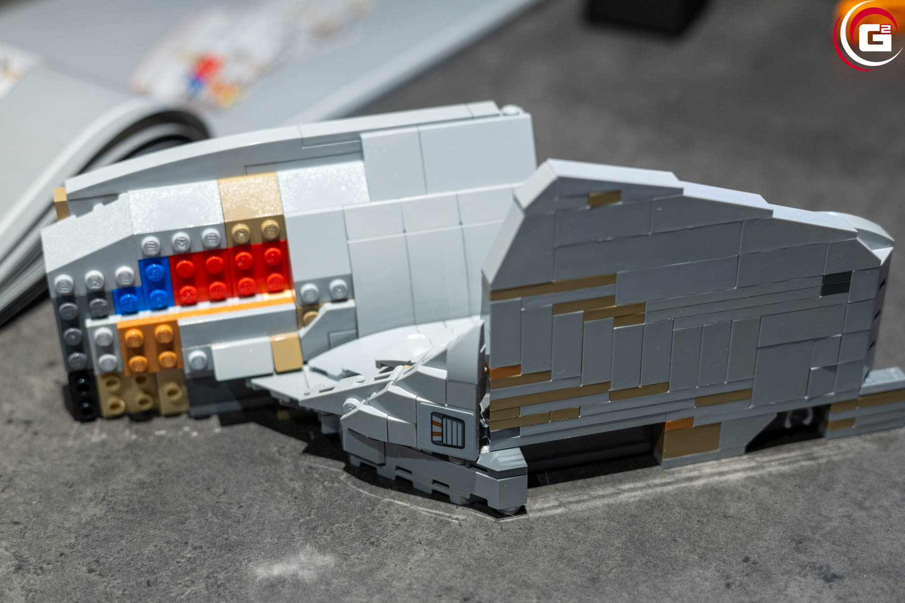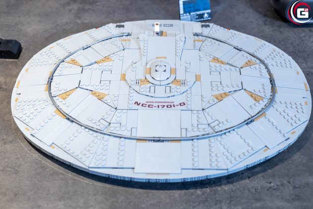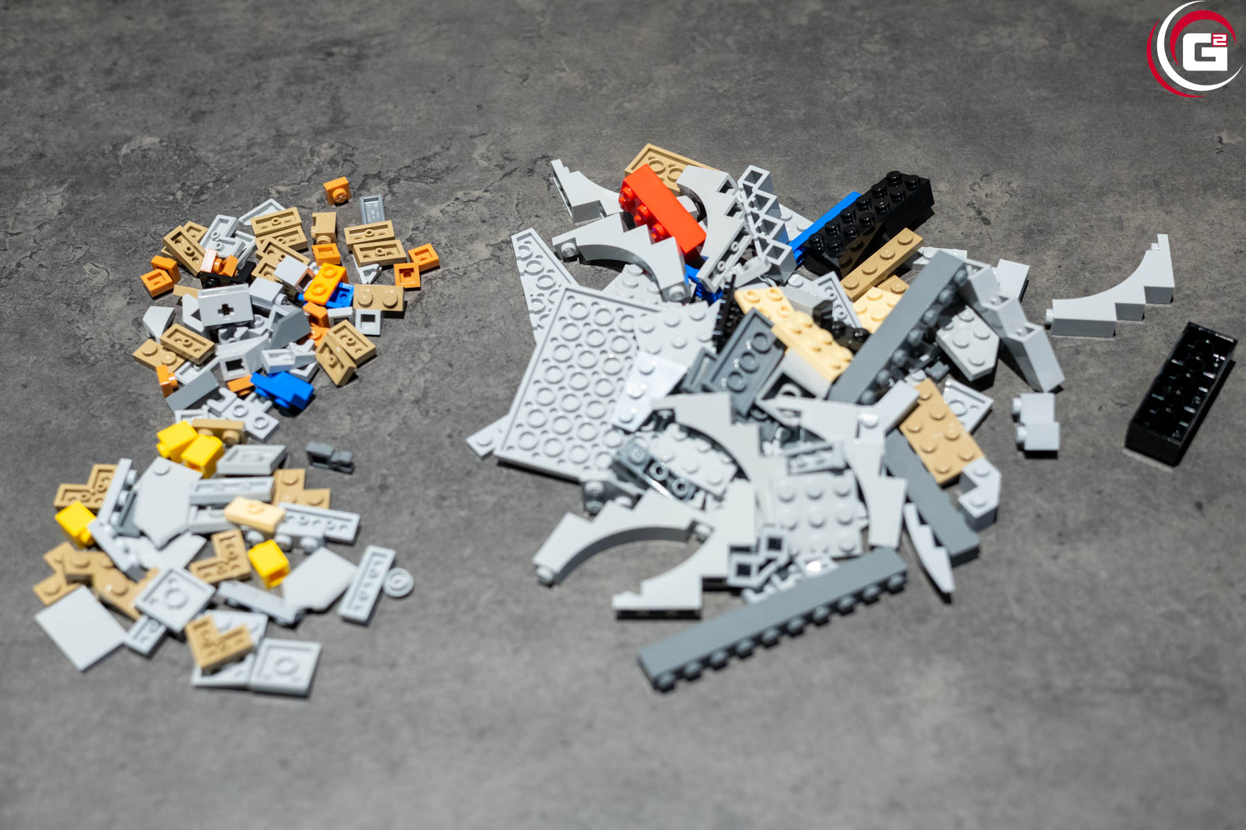 Wie man es von LEGO kennt, sind die Qualität der Bausteine und die Passgenauigkeit hervorragend, auch die Farbgebung ist homogen. Gestaltung und Detaillierung sind hier auf einem extrem hohen Niveau angesiedelt. Es kommen sehr viele bedruckte Teile zum Einsatz, insbesondere an den besonders markanten Stellen. Es gibt jedoch auch einige Sticker, die man ruhig durch weitere bedruckte Teile hätte ersetzen können. Durch seine Größe besitzt das Modell natürlich ein durchaus beeindruckendes Gewicht. Dank der extrem stabilen Konstruktion stellt dies kein Problem dar und auch der Modellständer ist so konzipiert, dass er das Modell stets stabil hält. Hierbei wurde auch berücksichtigt, dass das Modell nicht das Gleichgewicht verlieren darf, wenn man die Untertassensektion abnimmt. Zum Tragen wird in der Anleitung darauf hingewiesen, wie man das Modell am besten greifen kann, ohne etwas zu beschädigen.