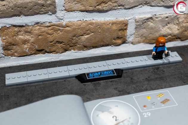 Mit den Schritten 28 und 29 schließen wir den unteren Teil der Untertassensektion nun vollständig. Auch hier gilt es wieder, aufgrund der Symmetrie viele Bauelemente in doppelter Ausfertigung zu bauen. Mit Lieutenant Word ist unsere Crew auch fast vollständig, und da er für die Sicherheit zuständig ist, hat er natürlich seinen Phaser dabei.