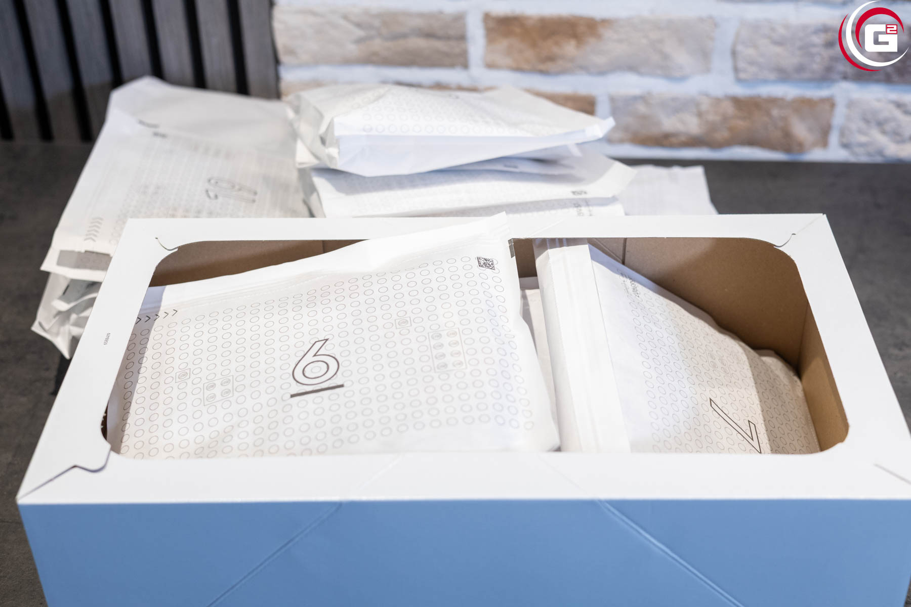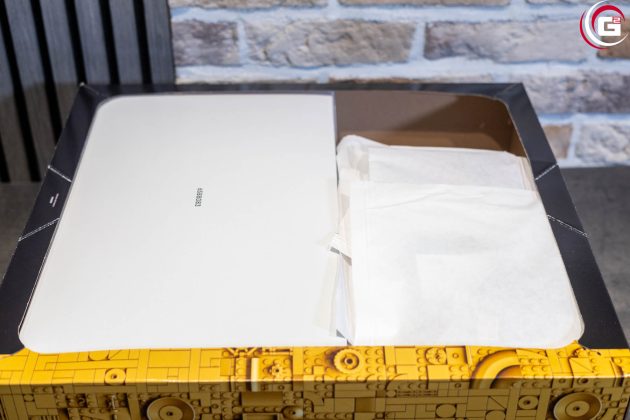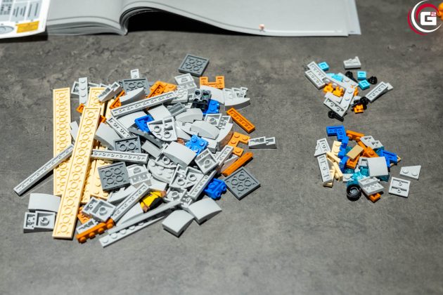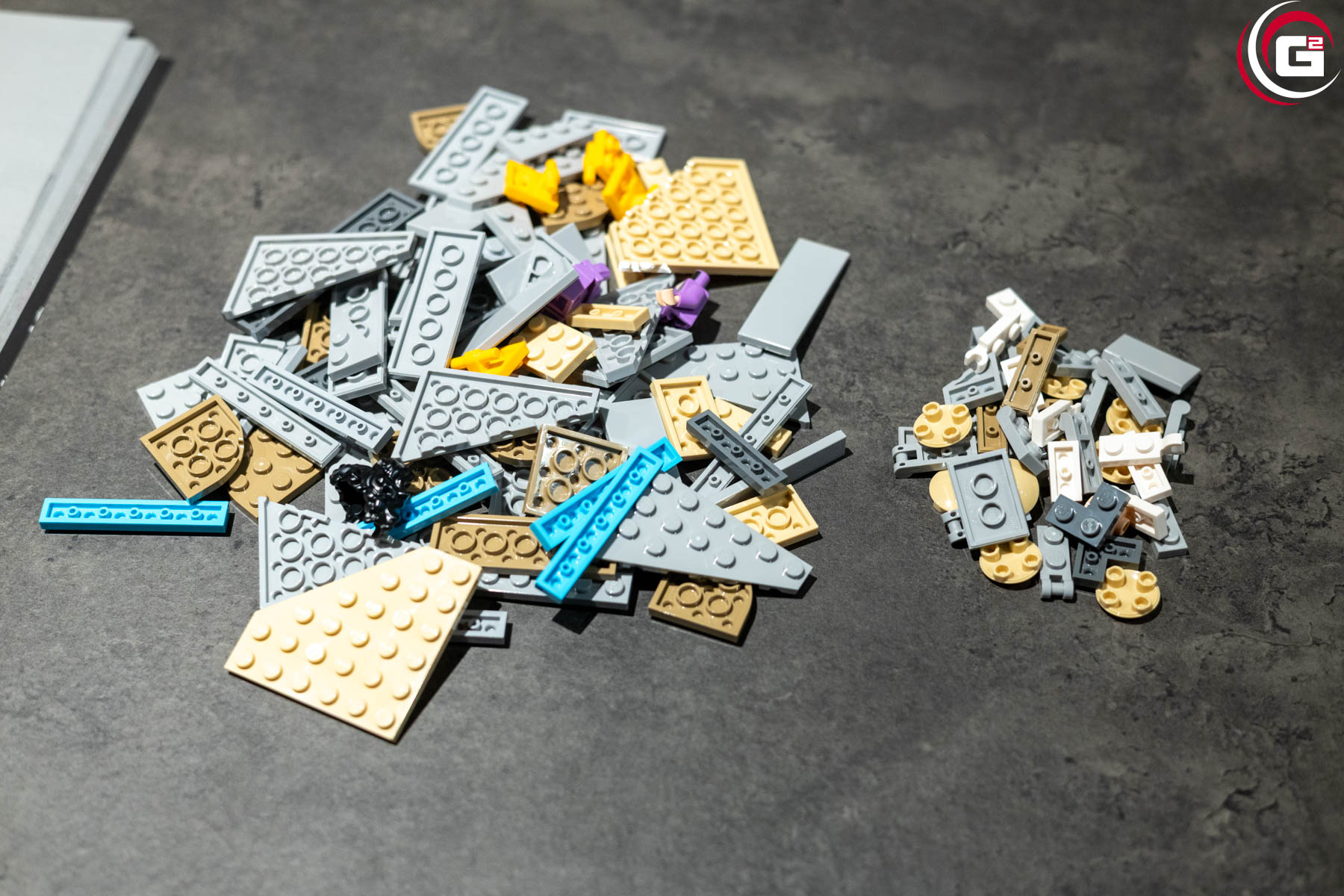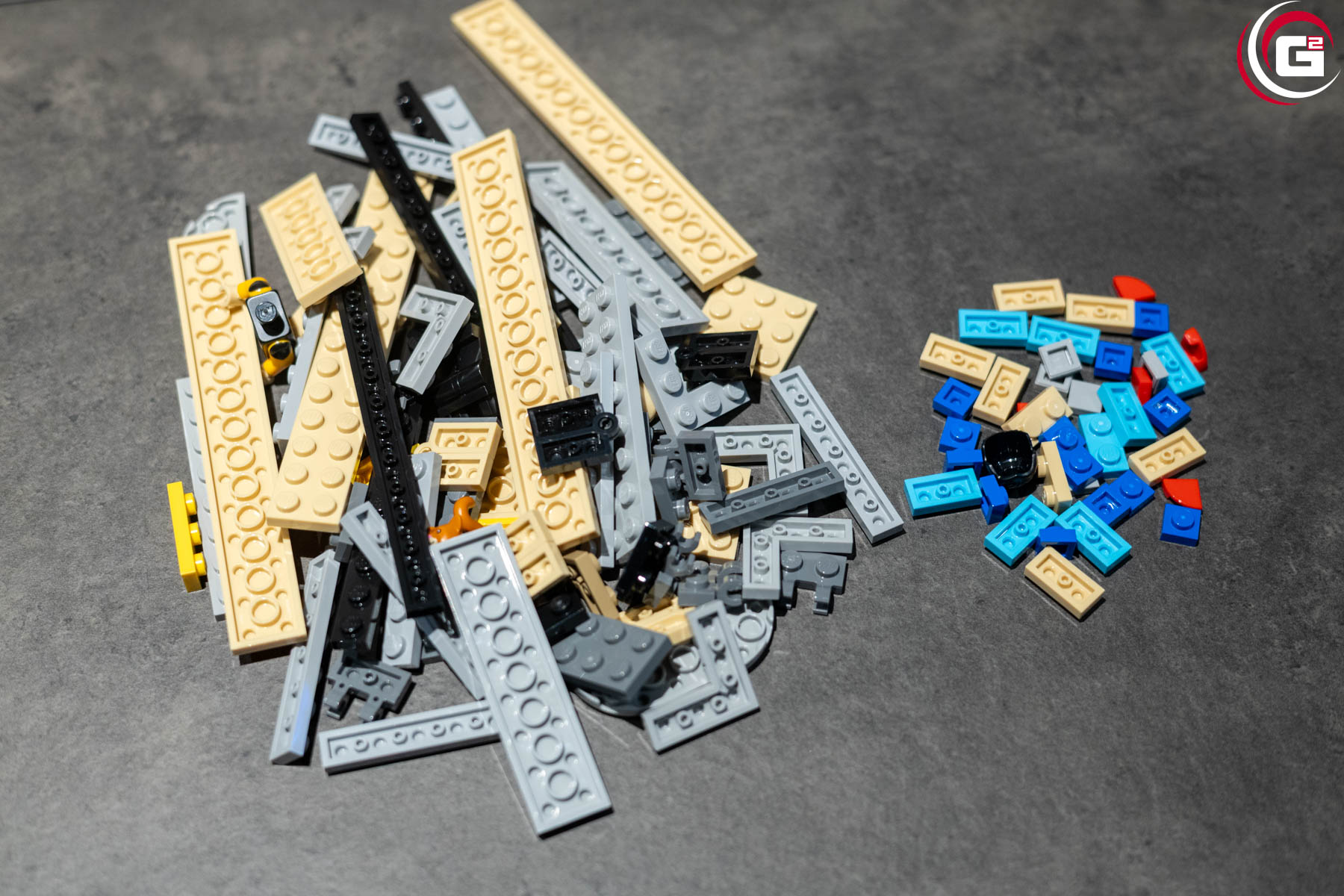 In der Verpackung finden sich neben der gedruckten, zweiteiligen Bauanleitung ganze 30 Papierbeutel und tatsächlich auch ein paar Aufkleber. Eine Hälfte der Tüten befindet sich in einem separaten Karton. Alle Baustufen befinden sich in Papiertüten, lediglich ein paar zusätzliche Bauelemente befinden sich in einer Plastiktüte. Zur Verbesserung der Nachhaltigkeit hat LEGO Ende letzten/Anfang dieses Jahres mit dem Wechsel von Plastik- zu Papiertüten begonnen, was sich allerdings noch nicht bei allen Sets zeigt.