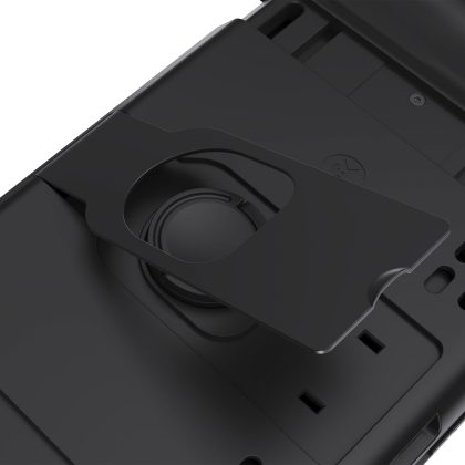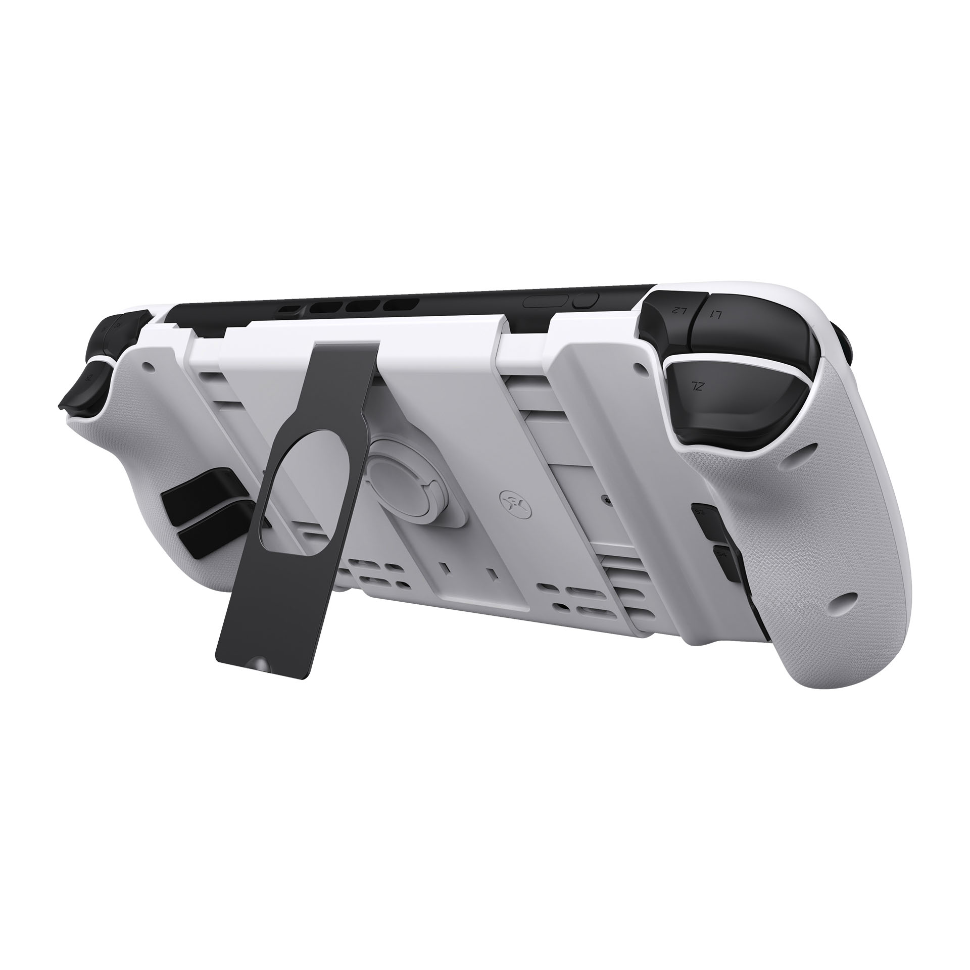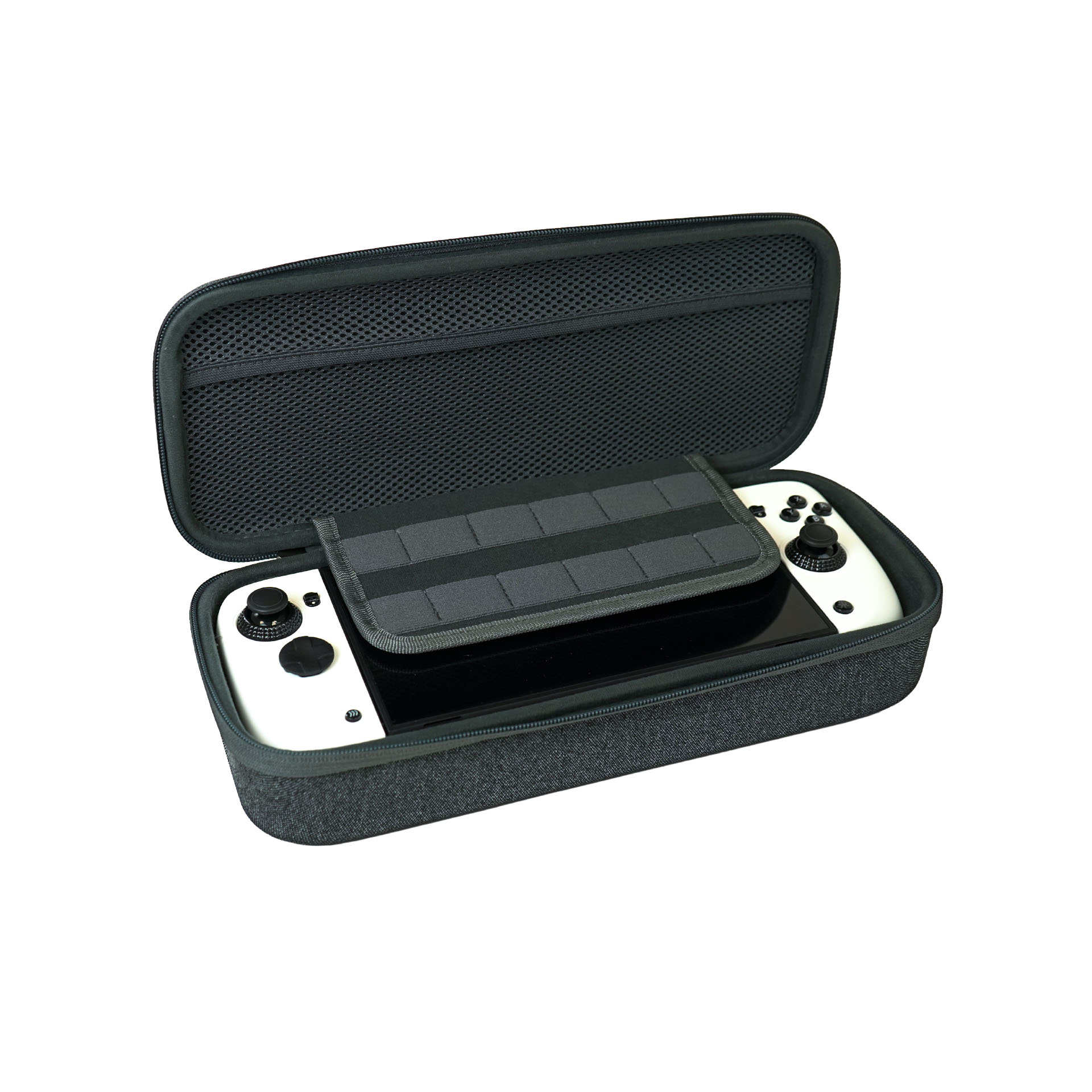 Eine der größten strukturellen Änderungen: Die Konsole wird nicht mehr in das Gehäuse eingeschoben. Stattdessen wird der Switch-Tabletteil eingelegt und mit einem rückseitigen Verriegelungs-Dial fixiert, sicherer und schonender für das Gerät. Ein Legacy-Adapter für ältere Switch-Modelle liegt bei. Für besonders geringe Latenz ist zudem ein U-Adapter für kabelgebundenes Handheld-Play enthalten.