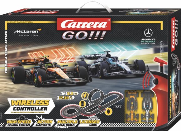 Die neuen GO!!! Sets greifen bekannte Duelle der vergangenen Saison auf und lassen McLaren, Ferrari, Mercedes und Oracle Red Bull Racing auf heimischen Rennstrecken gegeneinander antreten. Loopings, Steilkurven und Fly-Overs sorgen dabei für dynamische Rennverläufe. Auf der Carrera DIGITAL 132 Bahn stehen zusätzlich taktische Elemente im Vordergrund: Spurwechsel, Überholmanöver und der Einsatz von bis zu sechs Fahrzeugen gleichzeitig ermöglichen intensive Mehrfahrer-Rennen mit strategischer Tiefe.