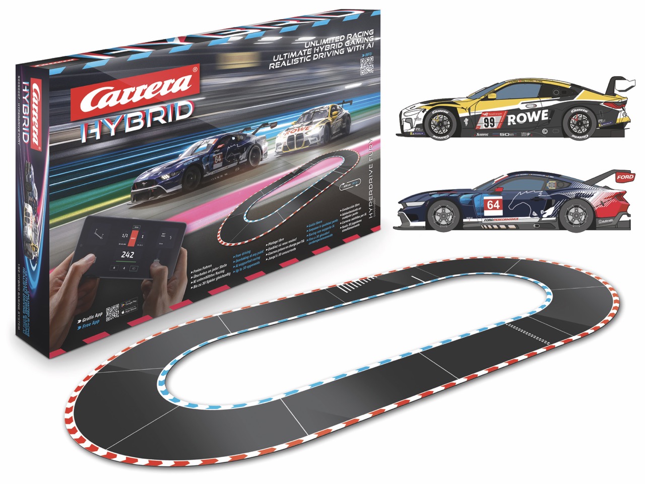 Dank Hybrid-Technologie bewegen sich die Fahrzeuge frei auf und neben der Strecke, Überholmanöver sind an jeder Stelle möglich. Unterschiedliche Rennmodi, strategische Elemente und eine extra breite Fahrbahn sorgen für abwechslungsreiche Rennverläufe. Neue Streckenteile wie Pitlane, Crossing und Brücken erweitern die Gestaltungsmöglichkeiten zusätzlich. Ein speziell entwickelter Controller mit Smartphone-Halterung bietet alternative Steuerungsoptionen und verbindet Haptik mit digitaler Kontrolle.