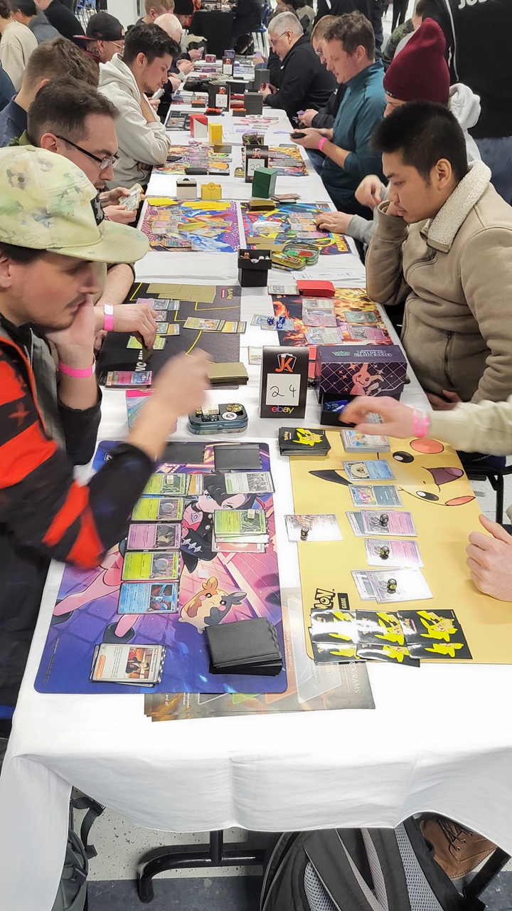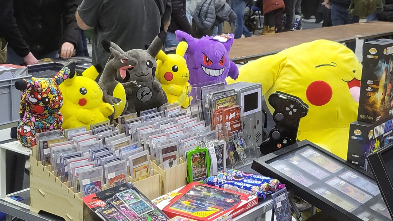 Neben dem eigenen Stand in der Mitte der Halle von JK-Entertainment, kamen noch weitere Händler aus Deutschland angereist, die das Sammelkartenherz höher schlagen lassen. Ganz groß im Fokus stehen ja nun seit ein paar Jahren Gradings und davon gab es auch ohne Ende. Es waren bewertete Karten darunter im oberen Hundert bis Tausend Euro Bereich. Dominiert hat hier definitiv Pokémon, was aber abzusehen ist, da Pokémon eher nur gesammelt wird von den Käufern und MtG bespielt.