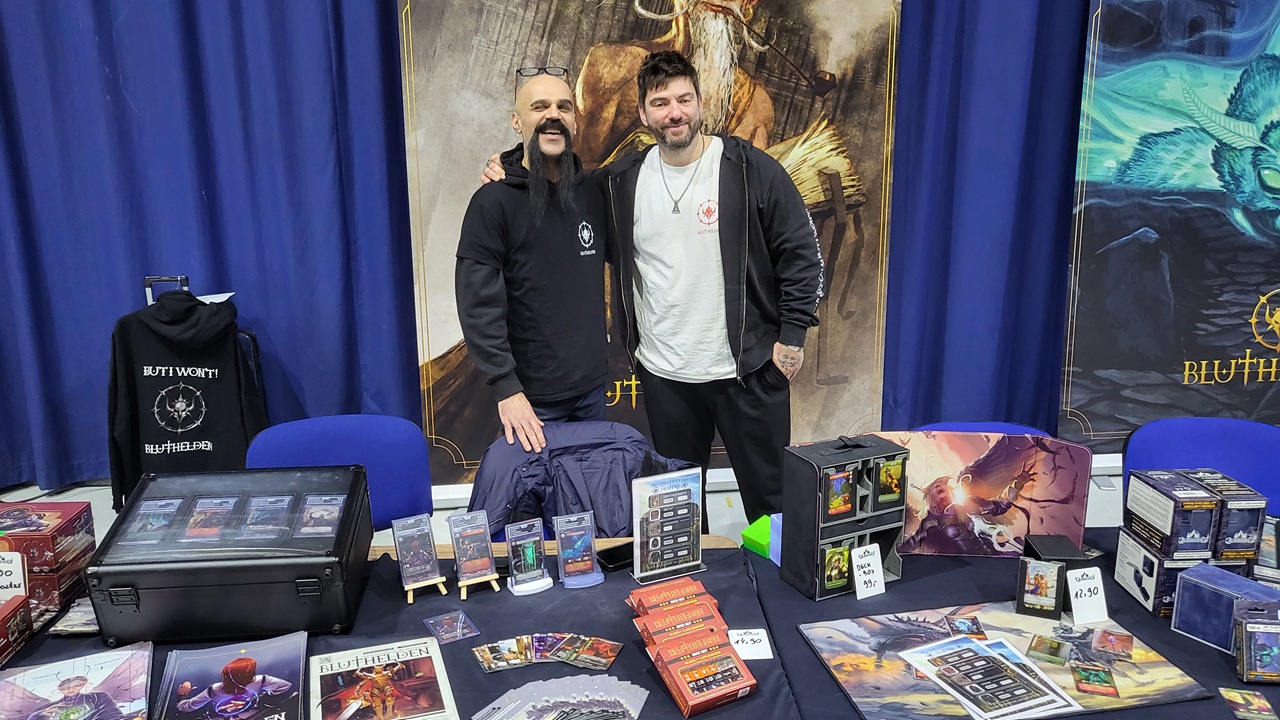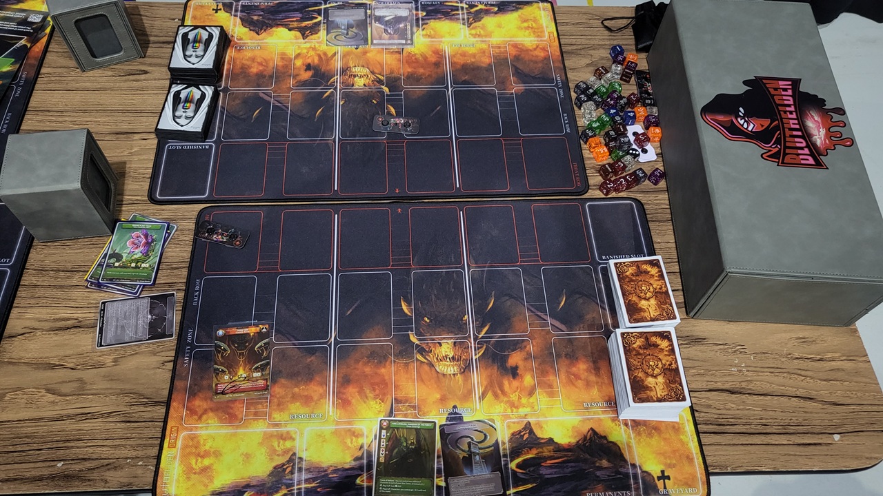 Außerdem durfte ich auf dem German Card Fest 2026 ein neues Kartenspiel kennenlernen. Die Rede ist von Bluthelden. Vorort lud man mich zu einer Partie ein, um mir das Spiel näherzubringen. Meiner Einschätzung nach ist es eine Kombination aus Magic, Gwent und Path of Exile. Zum einen haben wir verschiedene Zonen in denen sich die Beschwörungen gegenüberstehen. Dann haben wir auch Verbindungen zwischen Charakter und Quellen, die diesen stärker machen. Energiequellen können sogar im Level aufsteigen.