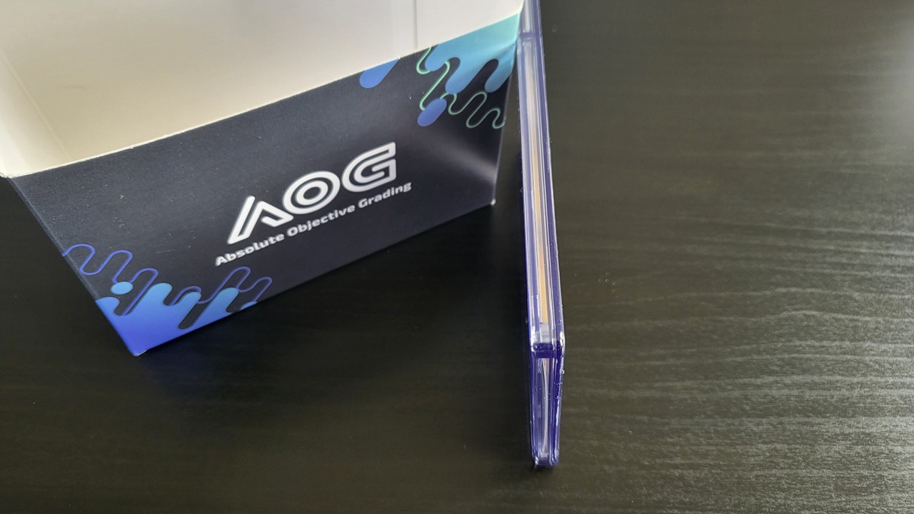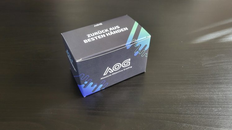 Bei meinem normalen Auftrag habe ich ca. 4 Wochen gewartet, bis ich meine Karten im Case zurückerhalten habe. Zuvor gibt es eine E-Mail Benachrichtigung mit Videolink, in der zu sehen ist, wie die zugesendeten Karten entpackt werden. Als Nächstes vor der Ankunft gibt es eine weitere E-Mail mit dem fertigen Prozess und Bewertung. Damit lässt sich das Ergebnis mit Fotos einsehen, noch vor erhalt des Paketes. Das Label ist im Falle von AOG kein Sticker oder ein Stück Papier, sondern eine beschichtete Kunststoffplatte von einem Industriepartner. Wenn das Grading geschüttelt wird, dann ist ein wenig klackern zu hören.