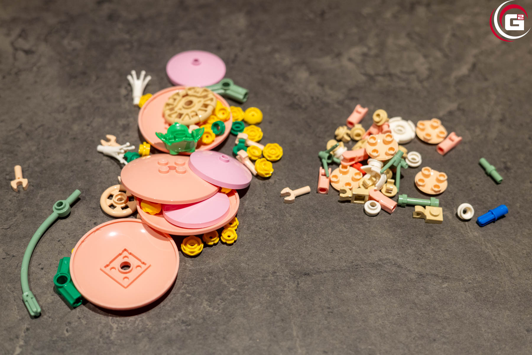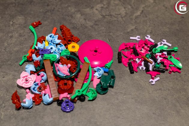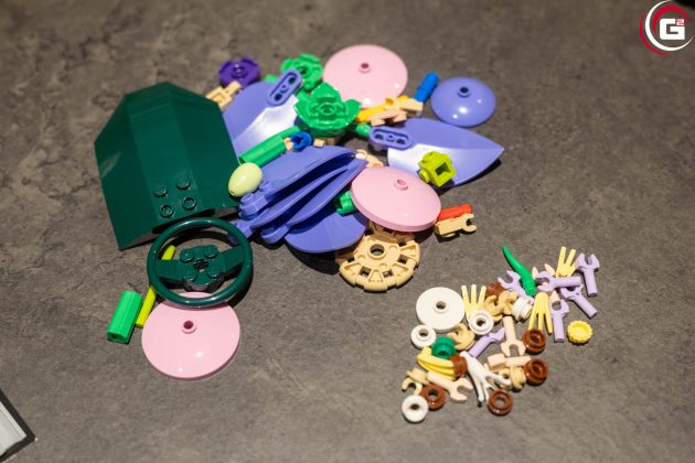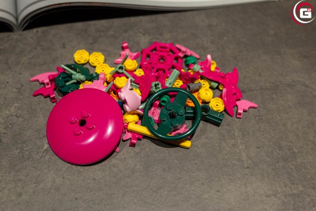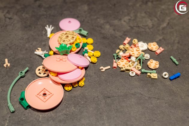 Der Aufbau ist entsprechend der neun Beutel in neun Baustufen unterteilt. Zwar unterscheiden sich die Größen der Beutel, jedoch kommen häufig sehr filigrane Teile zum Einsatz. So ist der Zeitaufwand etwa vergleichbar. Minifiguren oder Aufkleber gibt es hier keine.