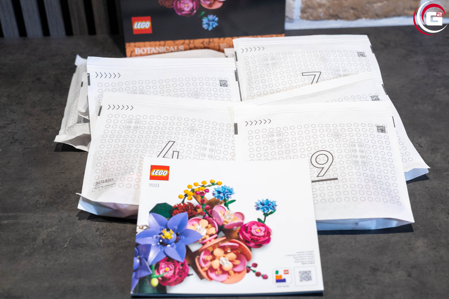 In der Verpackung finden sich neben der gedruckten Bauanleitung neun Papierbeutel in unterschiedlichen Größen. Mittlerweile ist bei LEGO der Umstieg von den Plastik- zu den Papiertüten soweit vorangeschritten, dass fast alle neuen Sets auf Plastikbeutel verzichten.