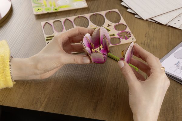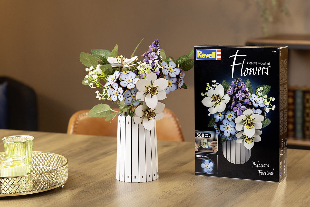 Mit Revell Flowers wird der traditionelle Blumengruß neu interpretiert. Statt vergänglicher Schnittblumen setzen die Sets auf detailreich gestaltete Holzblüten, die dauerhaft erhalten bleiben. Die einzelnen Teile werden präzise zusammengesteckt und ergeben am Ende ein dekoratives Arrangement inklusive Vase.