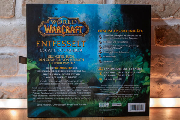 Aktuell sind Escape-Games ein großer Trend, denn so kann überall einen Escape-Room erschaffen. Hier bietet sich natürlich auch World of Warcraft wunderbar als Thematik an und wir können mit der Escape Room-Box Entfesselt auch abseits des Monitors Abenteuer erleben.