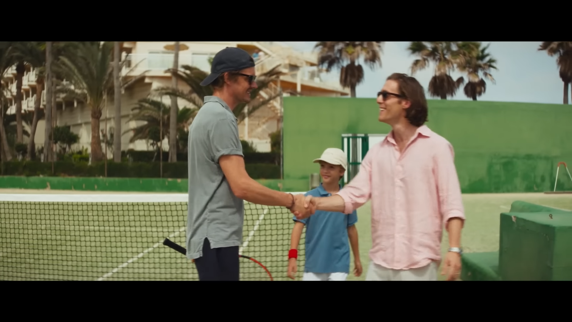 Trotz seiner inneren Leere erfüllt Tom seine Rolle als Tennislehrer mit charmanter Leichtigkeit. Die Hotelgäste lieben ihn, Kinder, Männer, Frauen gleichermaßen. Für die Männer ist er der coole Buddy, der einst gegen Rafael Nadal aufschlug, für die Frauen ein harmloser Flirt über das Netz hinweg. Doch diese Maskerade bröckelt, als eine neue Familie im Resort eincheckt. Anne (Stacy Martin) ist eine ehemalige Soap-Darstellerin, deren Eleganz ebenso gefährlich wirkt wie ihre Zurückhaltung. Ihr Ehemann Dave (Jack Farthing) strahlt die überhebliche Gelassenheit eines Mannes aus, der alles im Griff zu haben scheint oder es zumindest glauben möchte. Ihr Sohn Anton ist das unschuldige Bindeglied, das Tom zunächst als Trainer, bald aber als eine Art Ersatzvater kennenlernt. Zwischen Tom, Anne und Dave entsteht ein fragiles Dreieck aus Anziehung, Misstrauen und unausgesprochenem Begehren. Gerster inszeniert diese Dynamik mit subtiler Spannung, jeder Blick, jede Pause auf dem Tennisplatz ist aufgeladen mit unausgesprochenem Verlangen. Als Dave eines Abends nach einem feuchtfröhlichen Ausflug verschwindet, kippt der Film von einer sommerlich flirrenden Versuchung in ein schattenhaftes Mysterium.