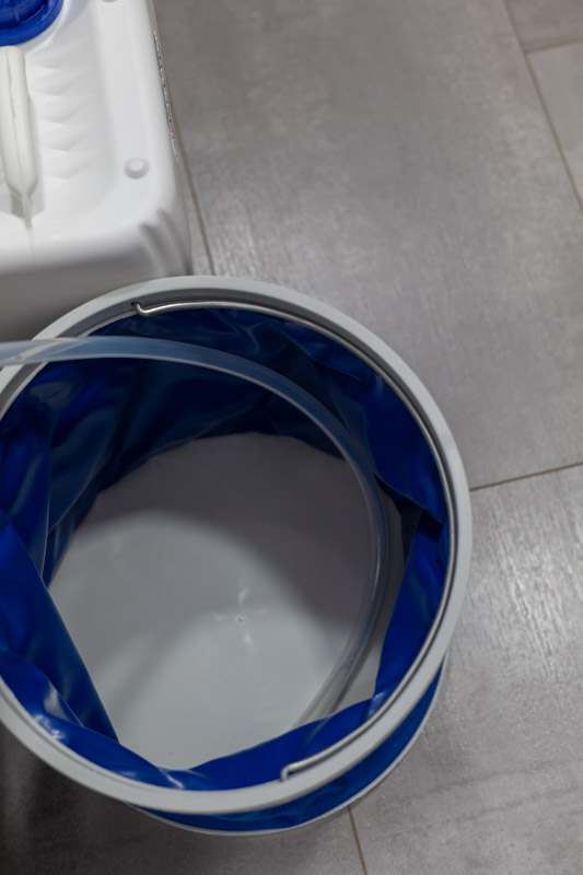 Als Erstes wird das zu reinigende Objekt mit Alkohol besprüht, sodass Resinreste nach unten hin ablaufen. Dann wird der untere Bereich des Innenraums mit Alkohol geflutet, um so die nach unten abgespülten Reste aufzunehmen. Über einen Filter im Innenraum wird dieser anschließend abgepumpt und in den Tank zurückgeführt (daher die beiden Schläuche). Nun werden Druckobjekt und Reinigungsraum mit Wasser gespült. Denn Isopropanolreste am Modell sorgen beim Curing für unschöne Verfärbungen auf unseren Drucken. Das Reinigungswasser wird, wie bereits erwähnt, in den Eimer gepumpt. Dieser ist mehr als ausreichend dimensioniert, um das Wasser von einem Reinigungsvorgang aufzunehmen. Wenn die Station mehrmals nacheinander laufen soll, würden wir empfehlen, hier einen größeren Eimer zu nutzen und auch einen größeren Wassertank zu verwenden. Sollte man den Reinigungsvorgang, aus welchem Grund auch immer, abbrechen, muss man etwa 4,5 Minuten warten, bis alle Flüssigkeiten abgepumpt sind.