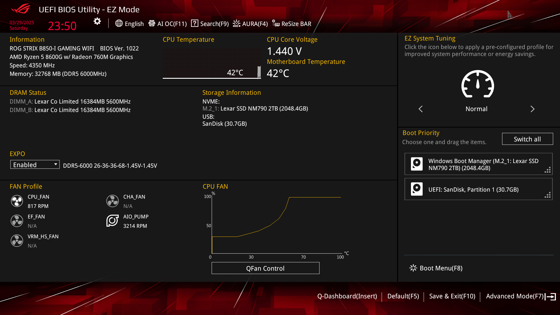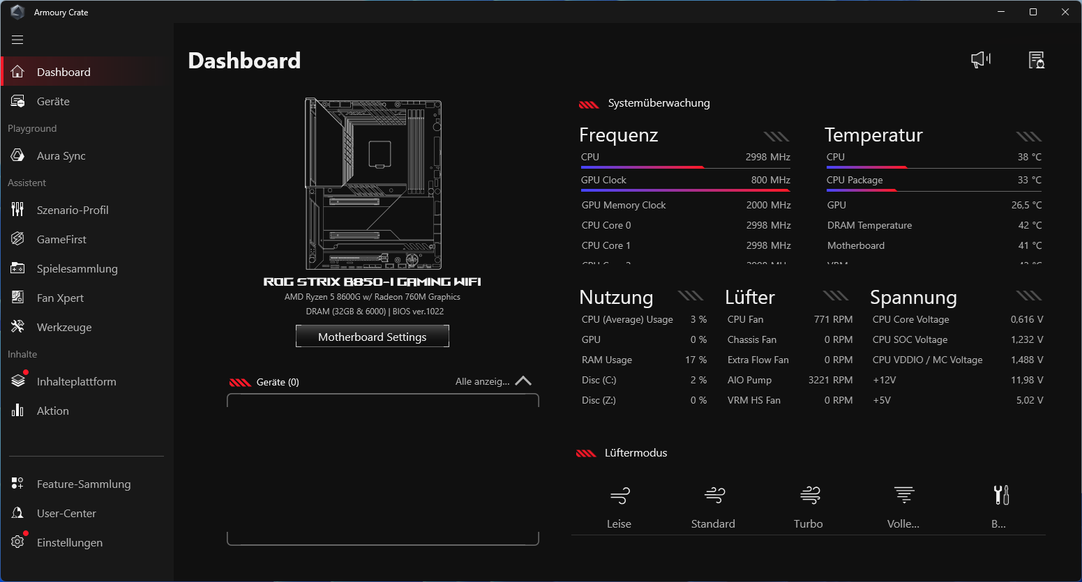 Zur Ansteuerung und Konfiguration des ASUS ROG STRIX B850-I Gaming WiFi kann man zum einen auf das UEFI und zum anderen auf die Software Armoury Crate, die umfassende Management-Software von ASUS, zurückgreifen.