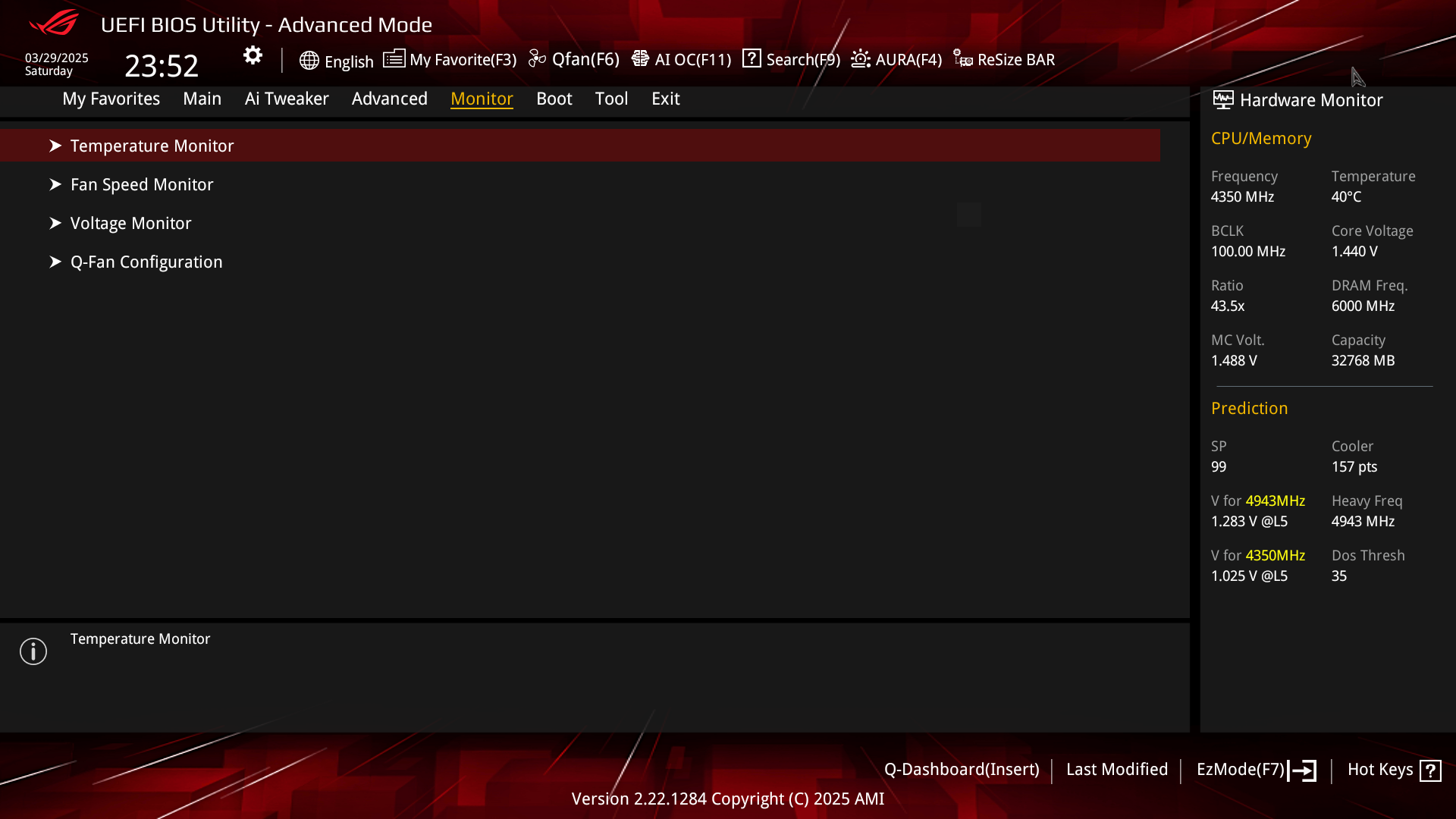 Das UEFI von ASUS ROG orientiert sich ebenfalls am charakteristischen Farbschema in Schwarz und Rot. Es bietet den gewohnten EZ Mode, der eine vereinfachte Benutzeroberfläche bietet, sowie einen erweiterten Modus, der Zugang zu sämtlichen Einstellungen gewährt. Im EZ Mode sind nur grundlegende Optionen verfügbar, die auf einer einzigen Seite angezeigt werden. Hier lässt sich unter anderem die EXPO-Funktion für den RAM sowie das EZ System Tuning ein- oder ausschalten. Zudem hat man Zugriff auf die Boot-Reihenfolge und die Lüftersteuerung über Q-Fan Control. Diese ermöglicht es, Lüfterprofile direkt im UEFI zu erstellen, sodass zusätzliche Software in vielen Fällen nicht notwendig ist. Zudem kann man den Betriebsmodus der Lüfter auf Auto-/PWM- oder DC-Modus einstellen. Für die drei Lüfteranschlüsse besteht die Möglichkeit, manuell eine Lüfterkurve zu definieren oder dies automatisch vornehmen zu lassen. Auch ASUS AURA zur Anpassung der ARGB-Effekte ist integriert.