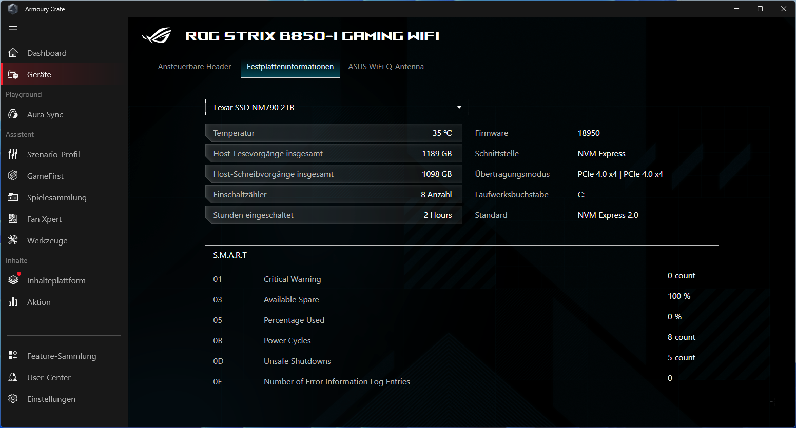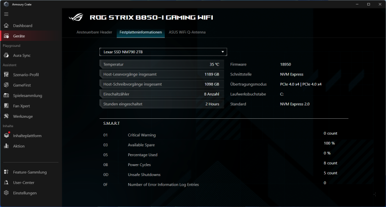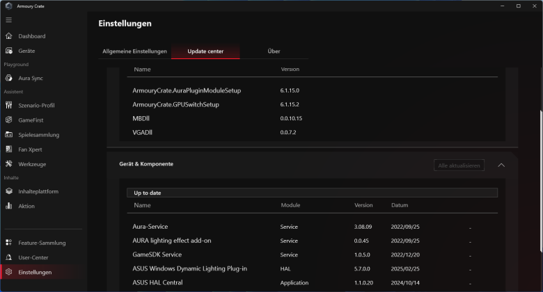 Weitere Funktionen von Armoury Crate umfassen Spieleoptimierungen, die Erstellung von Profilen und zahlreiche zusätzliche Features. Besonders praktisch ist die integrierte Treiber- und Softwareverwaltung, die nicht nur bei der Ersteinrichtung eines Systems hilft, sondern auch regelmäßige Updates erleichtert – unabhängig davon, ob Windows Update die Treiber bereitstellt.