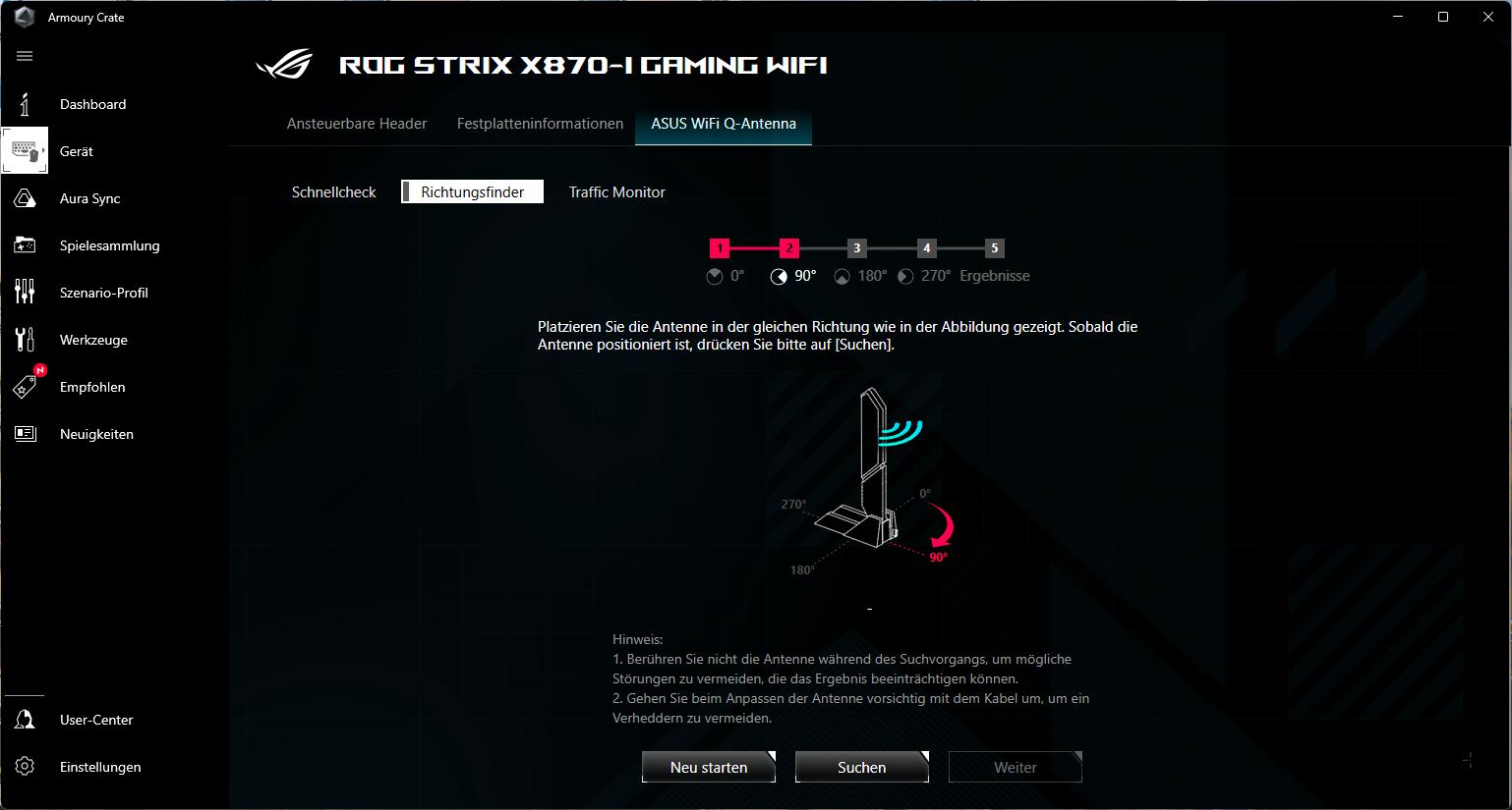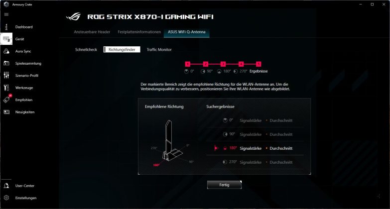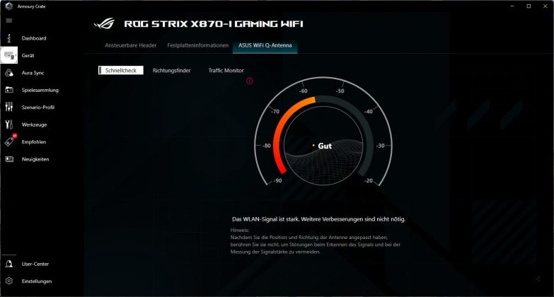 Für die Wi-Fi-Optimierung finden sich auch interessante Features. So gibt es Assistenten für eine Verbesserung der Antennenpositionierung. Hierbei kann man sich die WLAN-Signalstärken anzeigen lassen, um so den optimalen Ort und die optimale Ausrichtung der Antenne zu ermitteln.