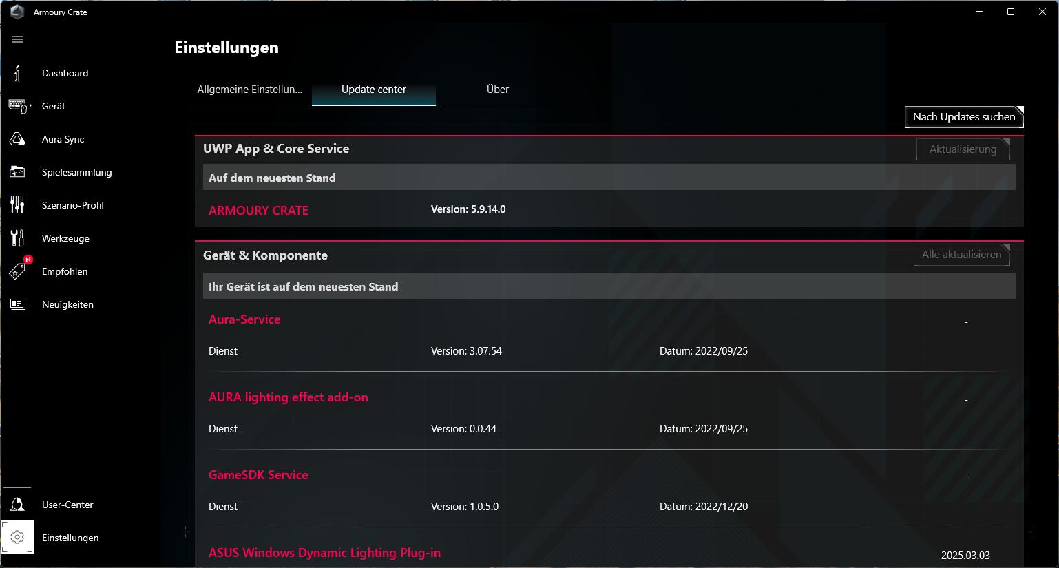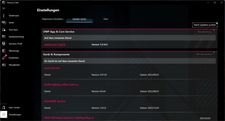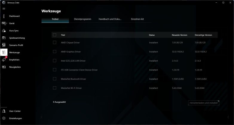Weitere Features von Armoury Crate sind Spieleoptimierungen, Profilerstellungen und vieles mehr. Sehr praktisch sind auch die Möglichkeiten zur Installation und Aktualisierung von zugehörigen Treibern und Software-Tools. Dies erleichtert natürlich die Neuinstallation eines Systems, ist aber auch komfortabel, um alles aktuell zu halten, denn nicht jeder Treiber wird von Windows Update berücksichtigt.