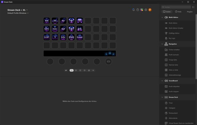Unverändert stark bleibt die Software-Seite. Die Stream Deck App gehört weiterhin zu den größten Stärken des gesamten Systems. Die Einrichtung erfolgt per Drag-and-Drop, Profile und Ordnerstrukturen lassen sich intuitiv anlegen, und eine breite Plugin-Unterstützung ermöglicht die Integration in zahlreiche Anwendungen wie Streaming-Software, Kreativprogramme oder Kommunikationstools. Ergänzt wird das Ganze durch den Elgato-Marktplatz, der fertige Profile, Icons und Erweiterungen bereitstellt. Da das StreamDeck + XL dieselbe Softwarebasis nutzt wie andere Modelle, können bestehende Profile problemlos übernommen werden. Für Nutzer bedeutet das: kein Umstieg, keine Einarbeitung – lediglich ein verbessertes Hardware-Erlebnis.