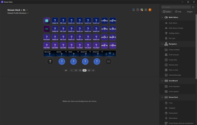 In der Praxis dient das Touch-Display vor allem als dynamische Steuer- und Informationsfläche. Je nach Konfiguration lassen sich hier beispielsweise zusätzliche Funktionen, Statusanzeigen oder kontextabhängige Steuerungen abbilden. Besonders in Verbindung mit bestimmten Plugins oder Multi-Actions entsteht dadurch eine zweite Ebene der Kontrolle, die über die reine Tastenbedienung hinausgeht. Das kann etwa in Audio-Workflows sinnvoll sein, wenn Pegel oder Quellen visuell dargestellt und gleichzeitig angepasst werden sollen.