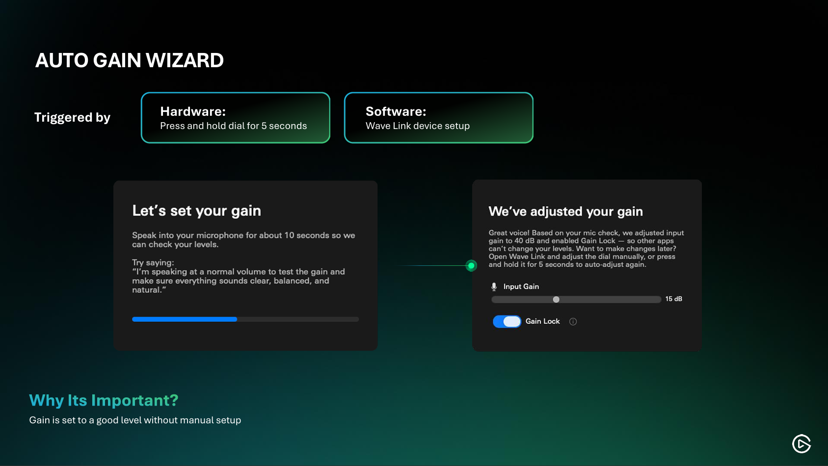 Der Auto Gain Wizard ist eine weitere Komfort-Funktion, die vielen die Einrichtung erleichtert. Gerade wenn du deinen Pegel regelmäßig wechselst (z. B. andere Mikrofone oder Sprecher), hilft der Wizard dabei:
