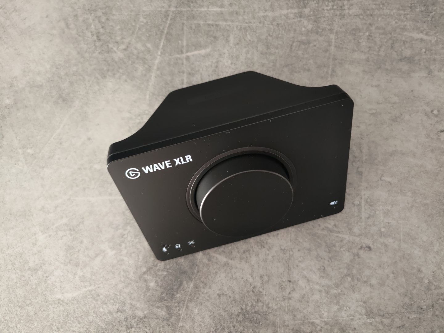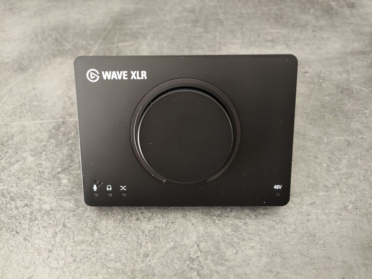 Optisch setzt das Wave XLR MK.2 auf das typische Elgato-Minimal-Design mit klarer Linienführung und einer kompakten Bauweise, die wenig Platz auf dem Schreibtisch einnimmt. Ein zentrales Merkmal ist der große, multifunktionale Regler vorne, der Gain, Kopfhörerlautstärke und den Mix-Blend (Mikro/PC) steuert. Dazu kommt eine kapazitive Mute-Taste oben, die das Mikrofon mit einer Berührung stummschaltet.