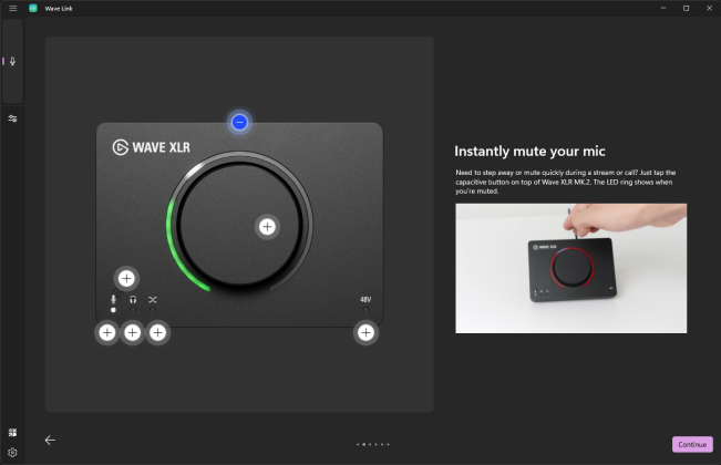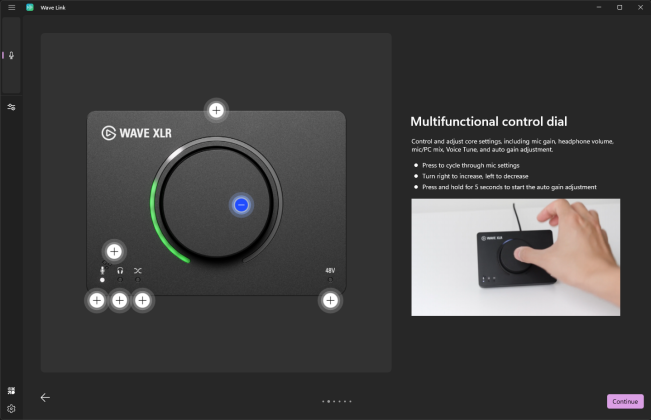 Eines der markantesten Merkmale des Wave XLR MK.2 ist das zentrale Control Dial mit umlaufendem LED-Ring. Während viele Audio-Interfaces auf mehrere Potentiometer setzen, kombiniert Elgato hier mehrere Funktionen in einem einzigen, kontextsensitiven Drehregler.