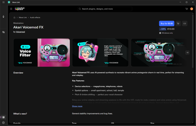 Praktischer Nutzen: Du kannst z. B. ein High-End-Noise-Gate eines Drittanbieters oder einen Vintage-EQ auf deine Stimme legen, bevor sie im Stream oder in der Aufnahme landet – alles in Echtzeit und mit niedriger Latenz.