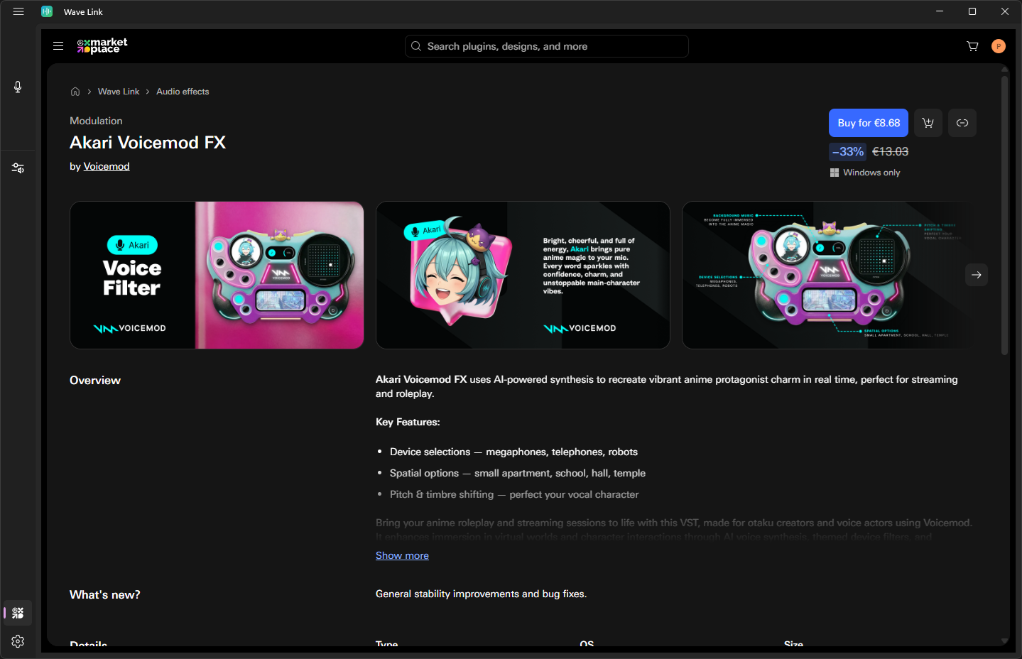 Eine modulare Erweiterbarkeit – du bist nicht nur auf die Standard-Effekte von Wave Link beschränkt.