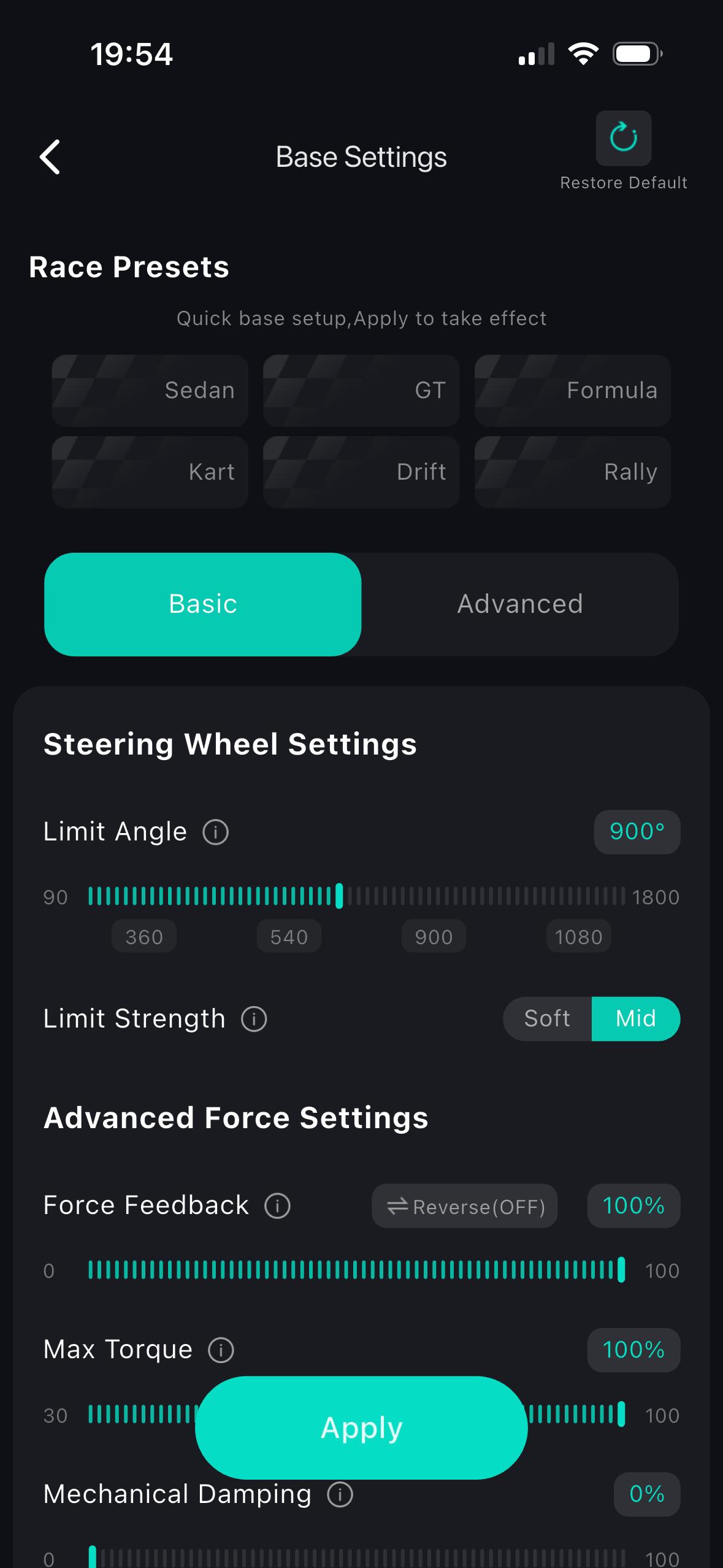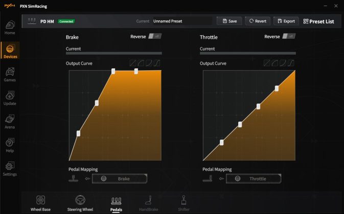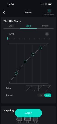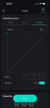 Spannender sind hier sicherlich die Anpassungsoptionen. Unter anderem kann man so den Einschlagwinkel je nach Spiel anpassen, in der Formel 1 fährt man mit anderen Winkeln als in einer Trucksimulation, die Stärke des Force-Feedbacks anpassen und auch die Reaktionskurven der Pedale anpassen. Beispielsweise, wenn man erreichen möchte, dass die Bremse bereits bei weniger Weg ihr Maximum erreicht. Für die beliebtesten Renntitel stehen zudem vorkonfigurierte Profile zur Verfügung. In Verbindung mit der PC-Software besteht zudem auch noch die Möglichkeit, das Smartphone als Telemetriedisplay zu nutzen.