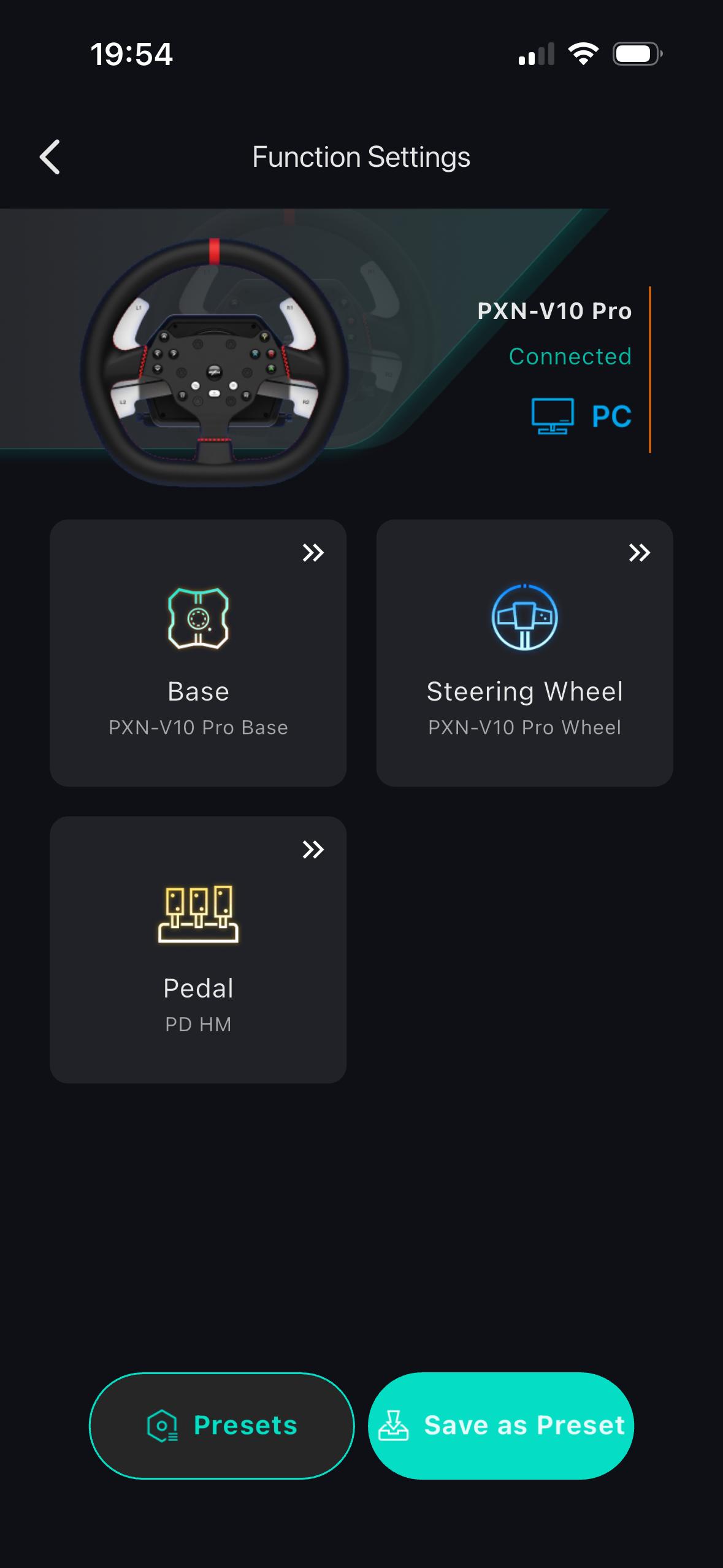 Für die individuelle Konfiguration des PXN V10 Ultra kann man auf eine Smartphone-App und eine PC-Software zurückgreifen. Nutzt man das Lenkrad beispielsweise an einer Spielekonsole, konfiguriert man mit der Smartphone-App.
