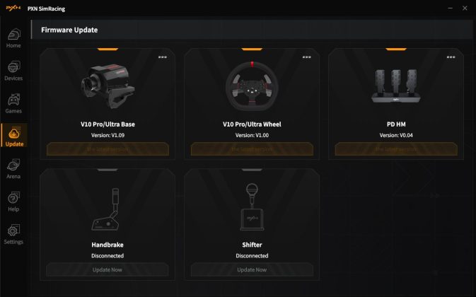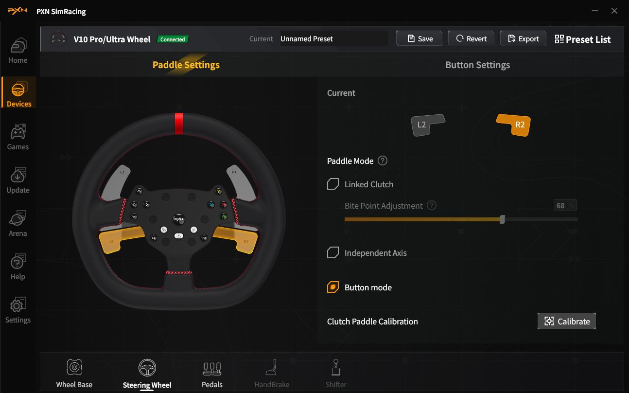 In der PC-Software PXN SimRacing finden wir im Prinzip dieselben Funktionen wieder. Auch hier können wir die Funktionen des Lenkrades testen, die Mittenposition kalibrieren und die Funktionen, wie Einschlagwinkel, Force Feedback, Reaktionskurven usw. individuell anpassen. Die Übertragung von Telemetrie ist für unterstützte Titel möglich. Werden diese über Steam gestartet, sind keine Anpassungen erforderlich, ansonsten muss der Programmpfad hinterlegt werden. Auch Firmware-Updates lassen sich mit der PC-Software problemlos durchführen.