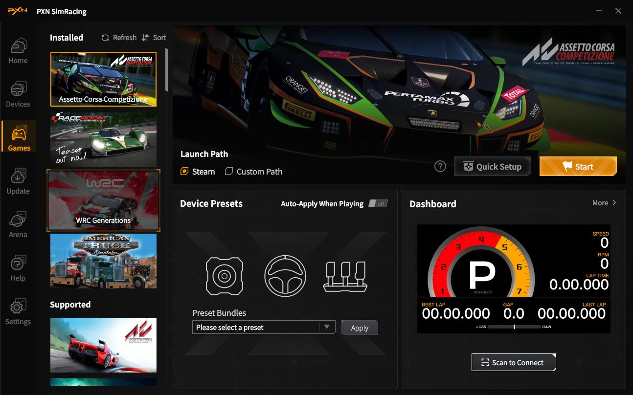 Für den Hands-on-Test mit dem PXN V10 Ultra haben wir uns für Assetto Corsa Competizione, EA SPORTS™ F1® 24, Forza Horizon 5, RaceRoom Racing Experience, WRC Generations und den American Truck Simulator entschieden.