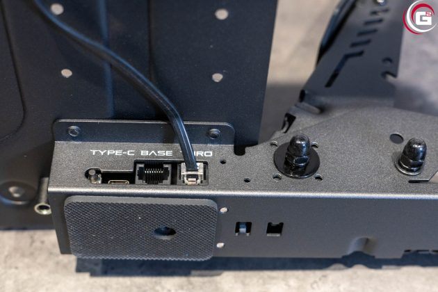 Für die Montage am Rig, einem Oplite Fury, mussten wir zunächst zwei neue Löcher bohren, da die Lochreihen hier, nicht zum Raster von PXN passten. Die Pedalerie war hier pflegeleichter, hier mussten wir nur die Aufnahme am Rig neu ausrichten, dann konnten wir diese gut verschrauben. Jetzt galt es nur noch das Lenkrad auf die Basis aufzustecken und mit der Überwurfmutter zu sichern. Die Pedalerie wurde nun mit einem USB-C-Kabel an den beschrifteten Anschluss der Basis angeschlossen. Nachdem auch das Netzteil mit der Basis verbunden und mit einem weiteren USB-Kabel die Verbindung zum PC hergestellt war, konnte es auch losgehen.
