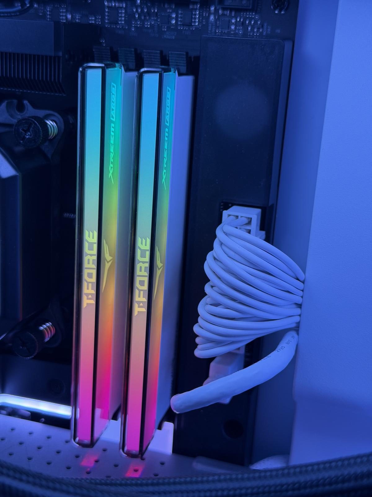 Mit dem T-FORCE XTREEM ARGB DDR5 6000 MHz liefert TEAMGROUP ein hochwertiges RAM-Kit, das vor allem durch sein außergewöhnliches Design und seine starke Verarbeitung überzeugt. Die Kombination aus weißem CNC-gefrästem Heatspreader, matt-sandgestrahlter Oberfläche und der mehrschichtigen ARGB-Lightpipe sorgt für eine edle, moderne Optik, die sich perfekt in helle oder minimalistische Builds einfügt. Auch die Beleuchtung setzt Maßstäbe: homogen, kräftig und ohne sichtbare Hotspots.