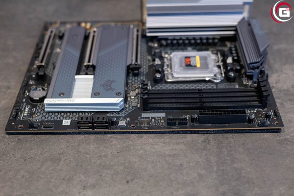 Mit dem NITRO+ B850A WIFI 7 gelingt SAPPHIRE eine gute Rückkehr in den Mainboard-Mainstream-Markt. Die Kühlung der Wandler rund um die CPU ist gut dimensioniert und auch die drei m.2-SSD-Slots verfügen über gut dimensionierte Kühlkörper, die einen stabilen Betrieb unter Volllast sicherstellen. Etwas ungewöhnlich ist die hohe Platzierung des PCIe-Gen5-x16-Slots, da dieser bei ATX-Boards aktuell in der Regel einen Slot tiefer platziert wird, um Platz für eine SSD oberhalb des Slots zu schaffen. Vermutlich hängt dies aber damit zusammen, das das Mainboard auch im mATX-Format verfügbar ist. Design und Verarbeitung des Mainboards sind auf gewohnt hohem Niveau und besonders in Kombination mit einer Grafikkarte der NITRO+ Serie ergibt sich ein wunderbares Zusammenspiel.