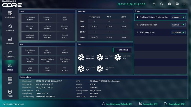 | Mainboard: | SAPPHIRE NITRO+ B850A WIFI 7 |