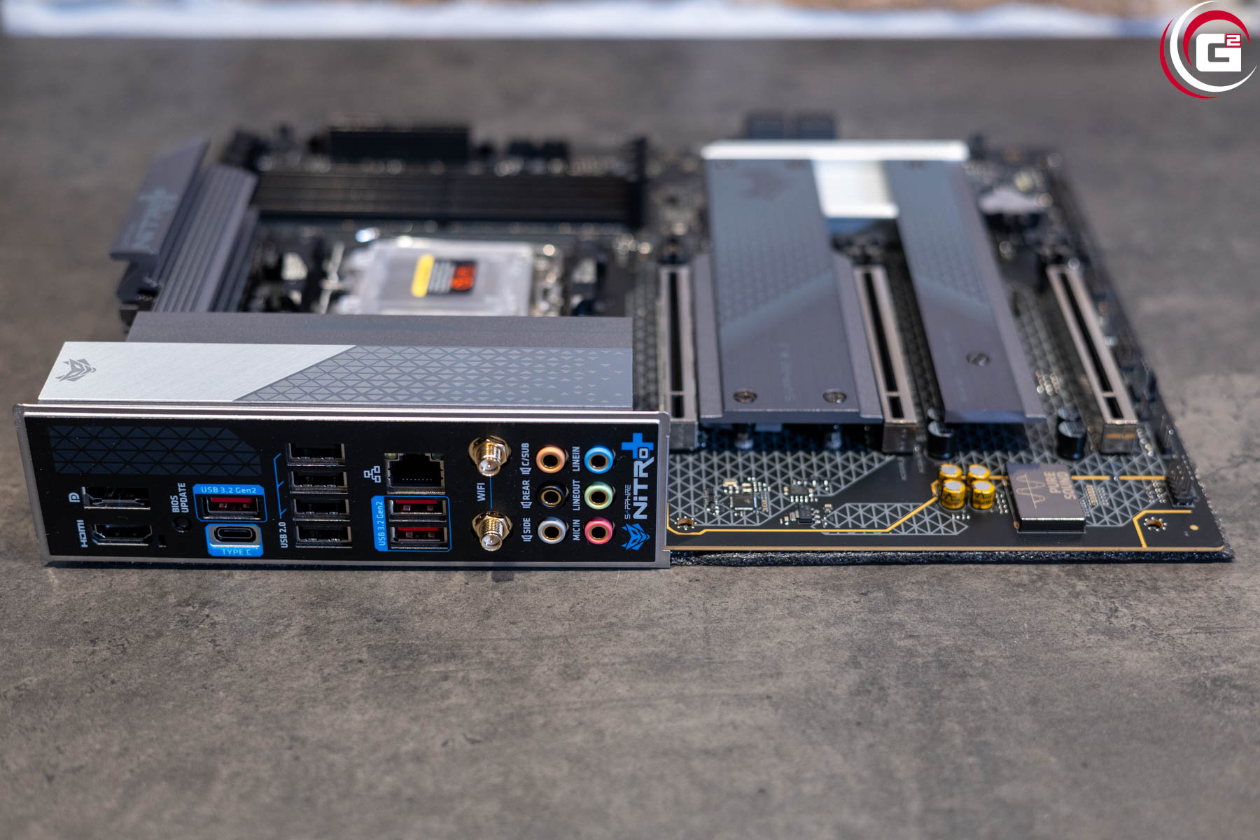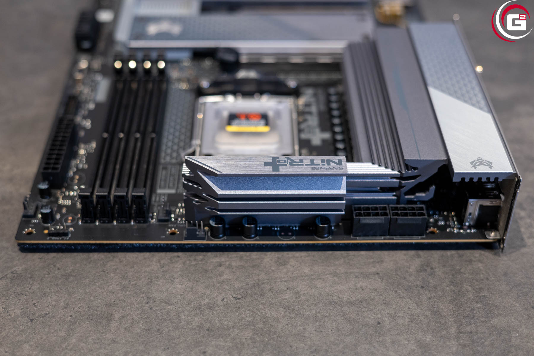 Die NITRO+ Premium-Kühlung sorgt mit großflächigen Kühlkörperabdeckungen für VRM, PCH und M.2-Steckplätze für eine effiziente Wärmeableitung und stabile thermische Leistung, auch bei hoher Systemauslastung oder Overclocking. Die M.2-Slots sind mit einem Clip-Mechanismus ausgestattet, der den Ein- und Ausbau von SSDs vereinfacht. Vier DIMM-Steckplätze unterstützen bis zu 256 GB DDR5-Arbeitsspeicher; bei Verwendung von zwei Modulen sind Taktraten von bis zu 8000 MHz möglich.