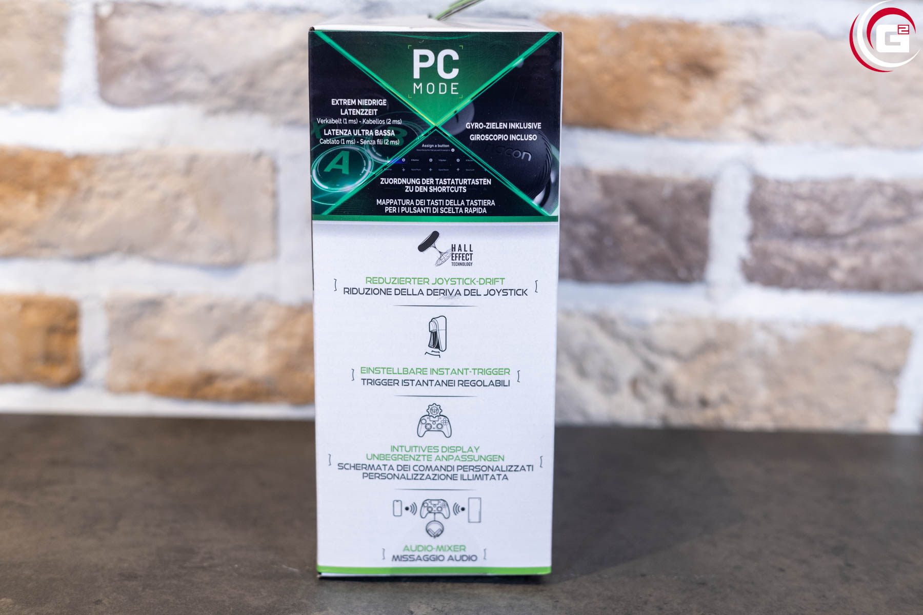 Der Controller unterstützt drei Verbindungsarten (2,4 GHz, Bluetooth, Kabel) und bietet eine Akkulaufzeit von mindestens zehn Stunden. Über die begleitende App lassen sich Profile, Tastenbelegungen und Makros individuell konfigurieren. Spezielle Modi wie der PC-Modus mit nur 1 ms Latenz oder der Shooter-Pro-Modus ohne Deadzone steigern die Performance zusätzlich.