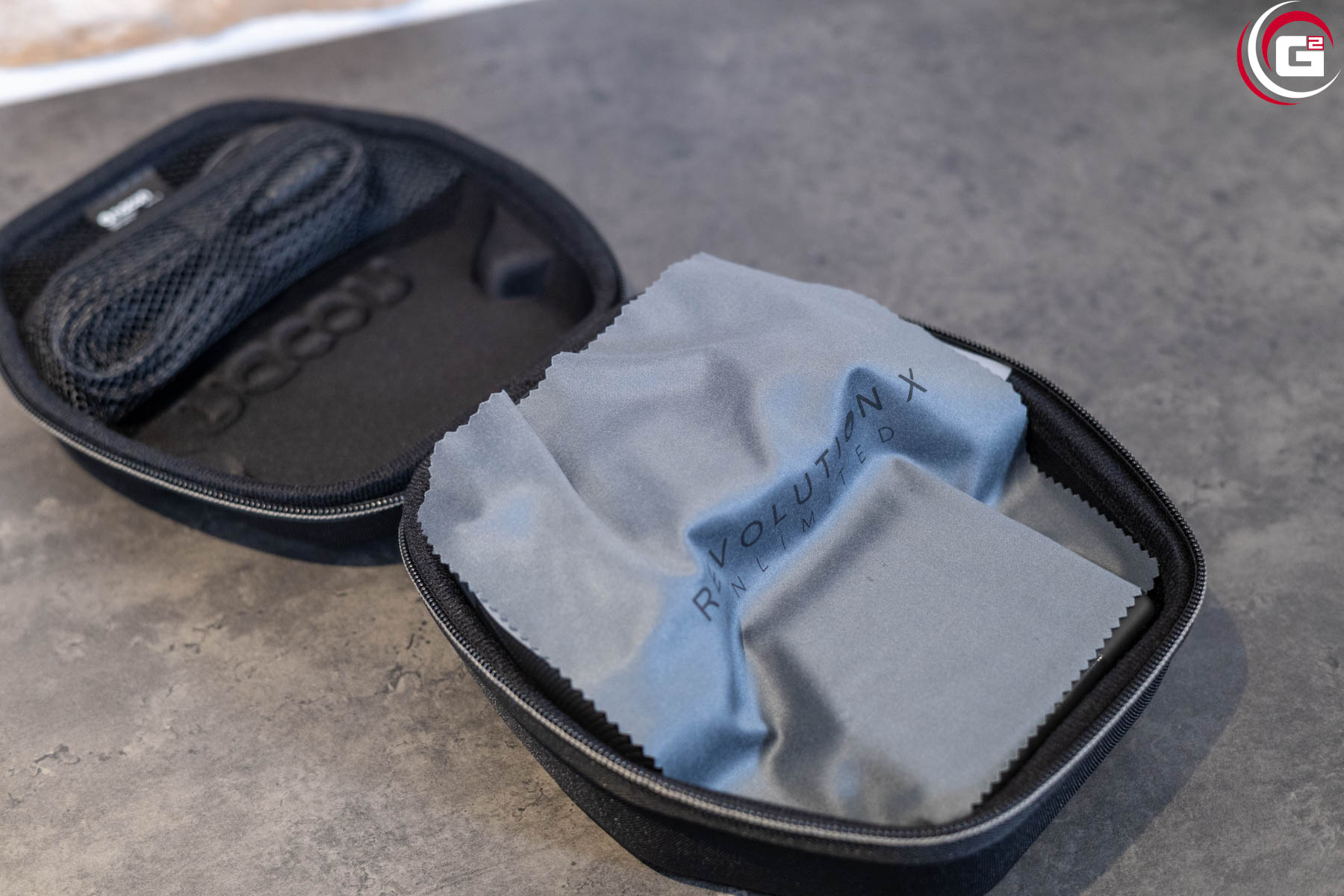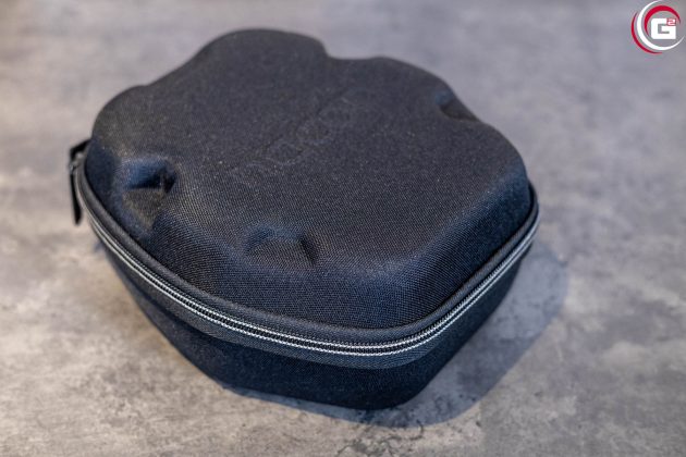 In der Umverpackung befindet sich der Controller in einem schwarzen Etui und ist zudem mit einem Mikrofasertuch abgedeckt. Zudem befindet sich ein Papier und eine Schutzfolie auf dem Controller. Im Etui findet sich noch der Lieferumfang, bestehend aus Wireless-Dongle, Ladestation, Anschlusskabel und eine Box mit Gewichten und Austauschaufsätzen für die Sticks.