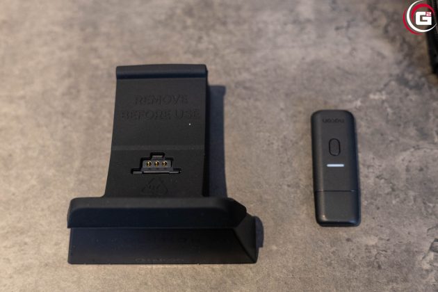 Als seien diese Features noch nicht genug, befindet sich im Lieferumfang neben dem qualitativen Case auch noch eine Ladestation. Hier kann man den Controller einfach auflegen und aufladen. Da diese unabhängig vom USB-Dongle ist, kann man sie beispielsweise auch einfach an einem USB-Netzteil anschließen und so außerhalb der Betriebszeiten des PCs laden.