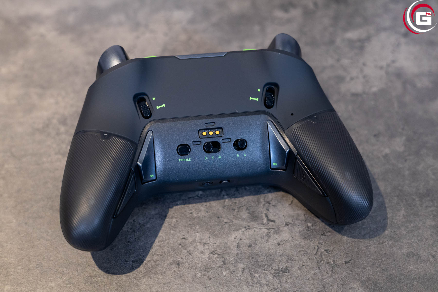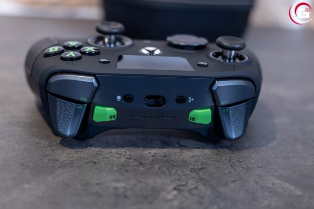 Da das Controller-Layout in seiner Konfiguration bereits sehr gut ausgelastet ist, ist es natürlich schwierig, die weiteren Tasten zu positionieren. Die Tasten S1 und S2 sind neben den Triggern nach innen versetzt, die Tasten S3 bis S6 sind im unteren Bereich der Rückseite, in direkter Reichweite von Mittel- und Ringfinger und mit diesen sehr gut zu erreichen. Diese Positionierung ist auch etwas gewöhnungsbedürftig, da man diese zunächst auch schnell versehentlich auslöst. Da diese aber für die zusätzlichen Shortcuts gedacht sind, kann man zunächst auch von einer Belegung absehen und sich erstmal an die neuen Tasten gewöhnen.