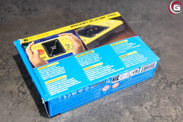 Geliefert wird der My Arcade PAC-MAN Pocket Player Pro in einer aufklappbaren Umverpackung, die einen direkten Blick auf den Handheld ermöglicht. Die Oberseite ist mit einer Abbildung des Handhelds und dem ikonischen PAC-MAN-Logo versehen. Klappt man die Verpackung auf kann man nicht nur den Pocker Player Pro erblicken, sondern auch etwas zur Geschichte von PAC-MAN nachlesen. Auf der Rückseite sind zudem noch die Features des Gerätes aufgelistet. Der Lieferumfang besteht aus dem Gerät und der Bedienungsanleitung, Batterien müssen separat erworben werden.
