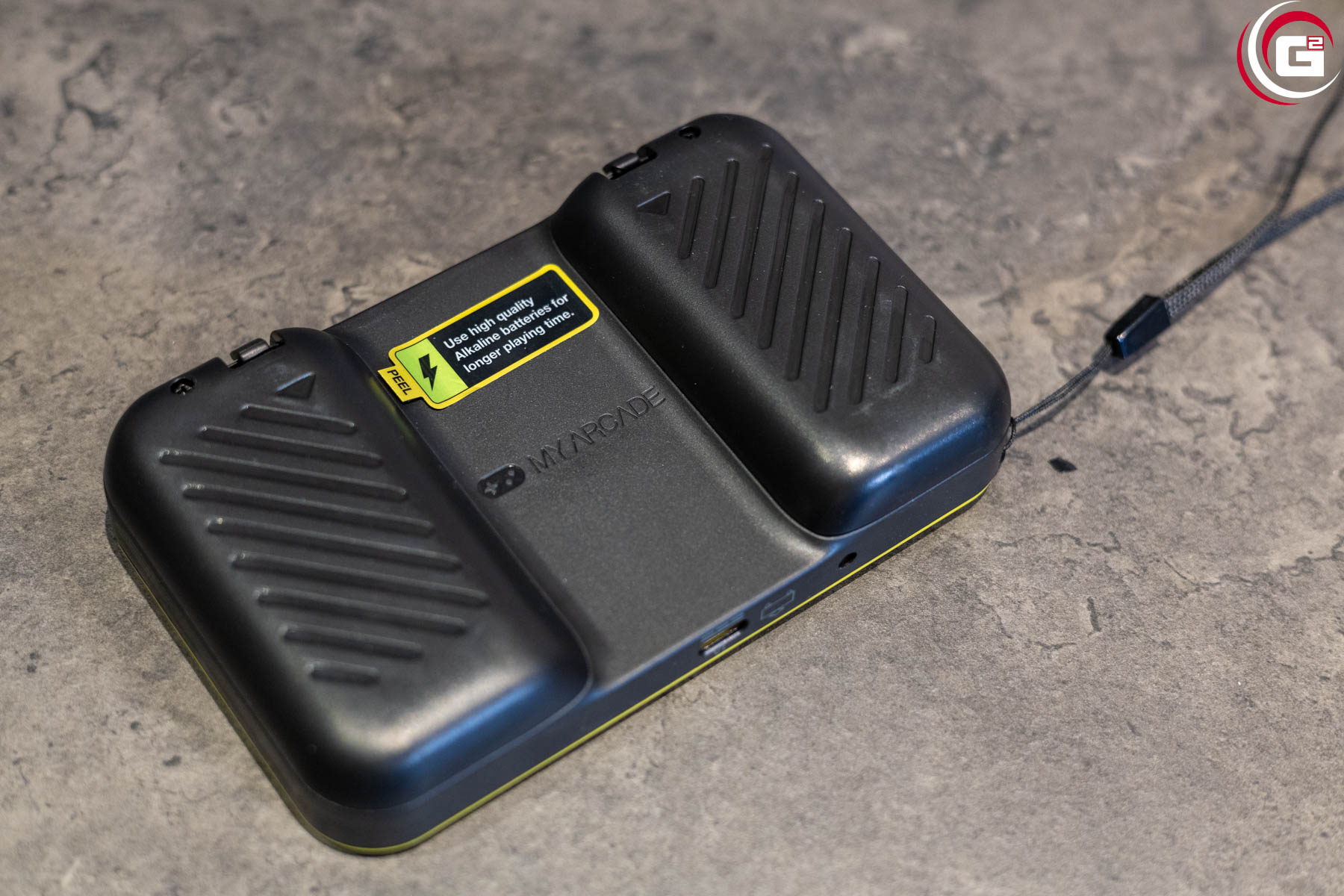 Der My Arcade PAC-MAN Pocket Player Pro besitzt eine klassische Handheldform mit einem Steuerkreuz auf der linken und zwei Tasten auf der rechten Seite. Schließlich braucht man für PAC-MAN auch nur die Möglichkeit die Spielfigur zu lenken. Das Farbdesign ist dem Thema angepasst, so ist die Rückseite schwarz gehalten und die Vorderseite in Gelb mit einem roten Steuerkreuz ausgeführt. Zudem gibt es auf der Vorderseite einen PAC-MAN-Print im Comic-Stil. Mittig ist das Display im Hochformat eingelassen, passend zum klassischen PAC-MAN. Die Rückseite besitzt zwei große Ausbuchtungen durch die Batteriefächer, wodurch der Handheld gleich griffiger wird. An der unteren Kante gibt es auch noch einen USB-C-Anschluss für eine alternative Stromversorgung, z.B. ein Netzteil oder eine Powerbank. Zudem gibt es noch für Unterwegs eine Handschlaufe.