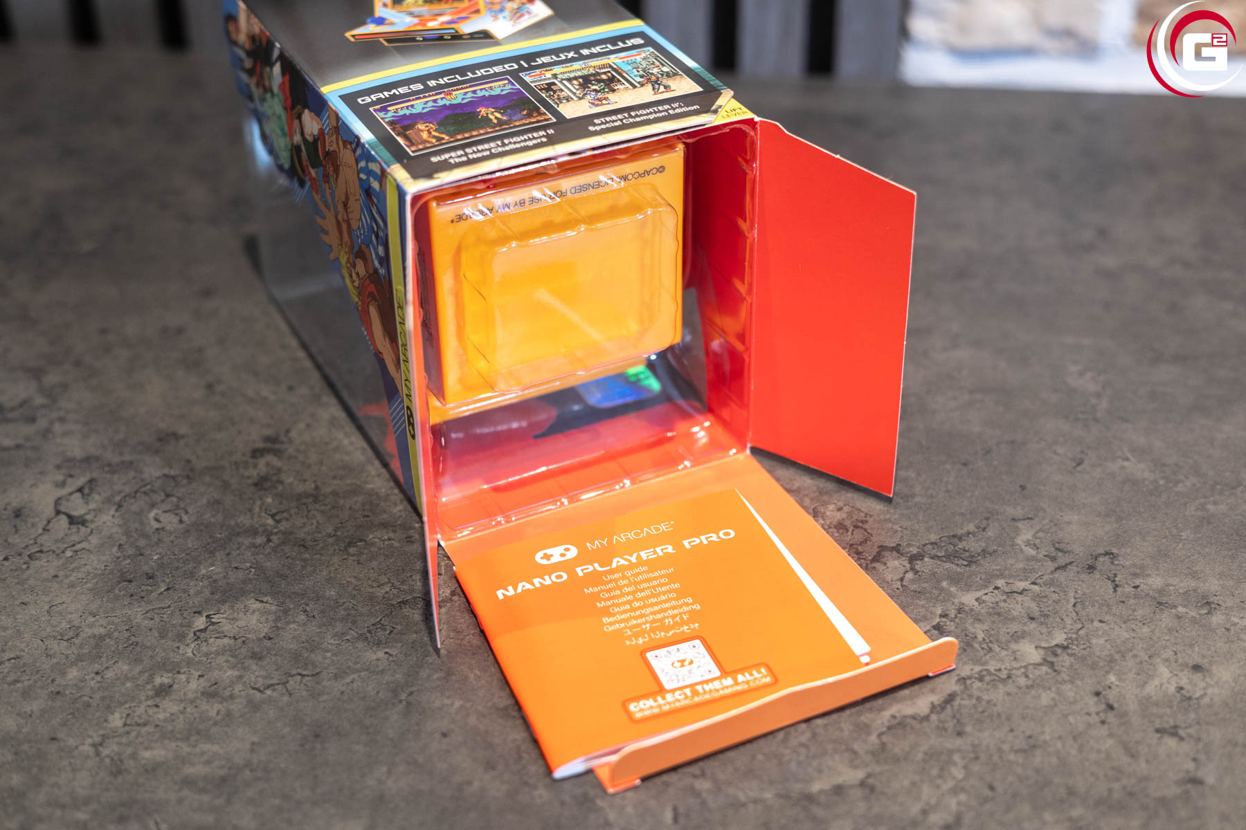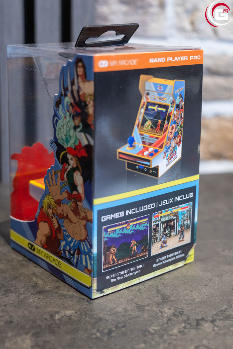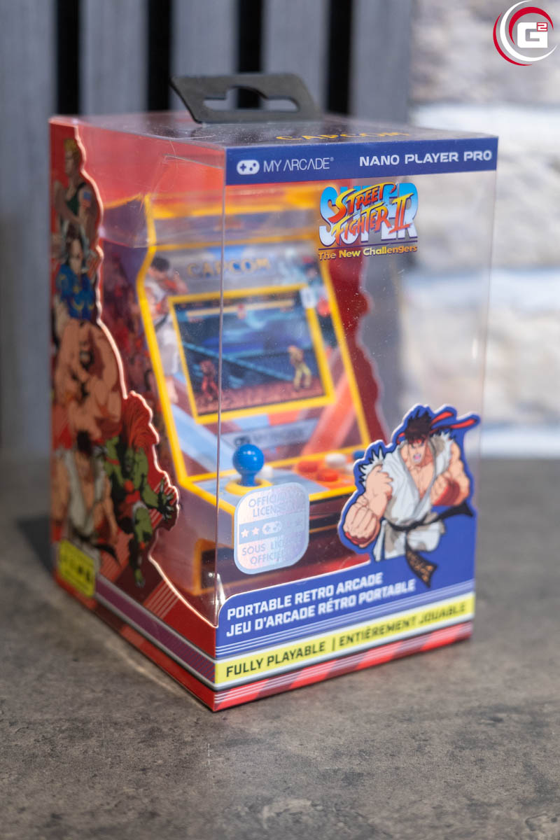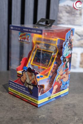 Der My Arcade Super Street Fighter II Nano Player Pro ist ein eigenständiges Mini-Arcade-Gerät mit vorinstallierten, offiziell lizenzierten Spielen. Enthalten sind Super Street Fighter II: The New Challengers sowie Street Fighter II‘: Special Champion Edition.
