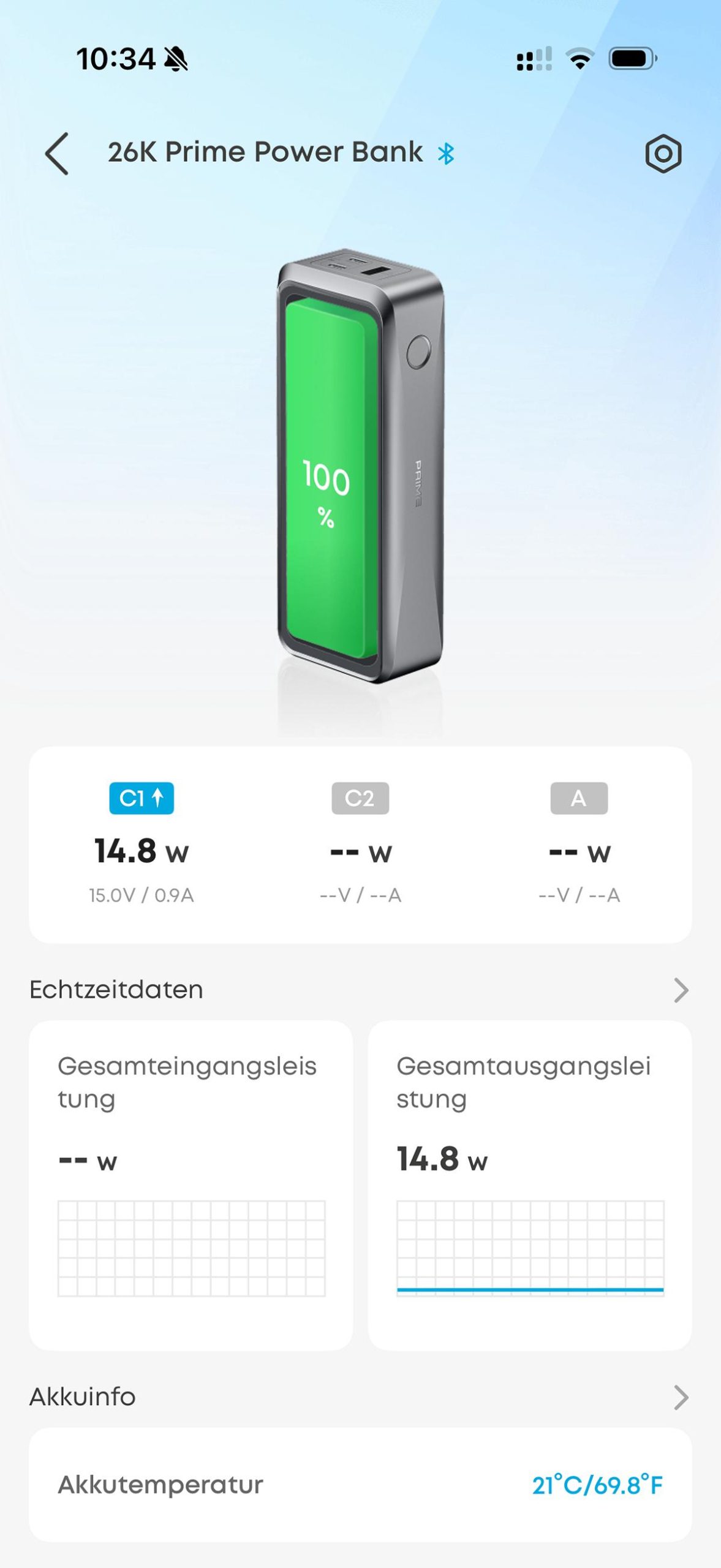 Neben der hohen Leistung und Vielseitigkeit, ist auch die App-Kompatiblität ein Features der Anker Prime Powerbank (26K, 300W). Mittels Bluetooth kann sie mit dem Smartphone und der Anker-App gekoppelt werden.