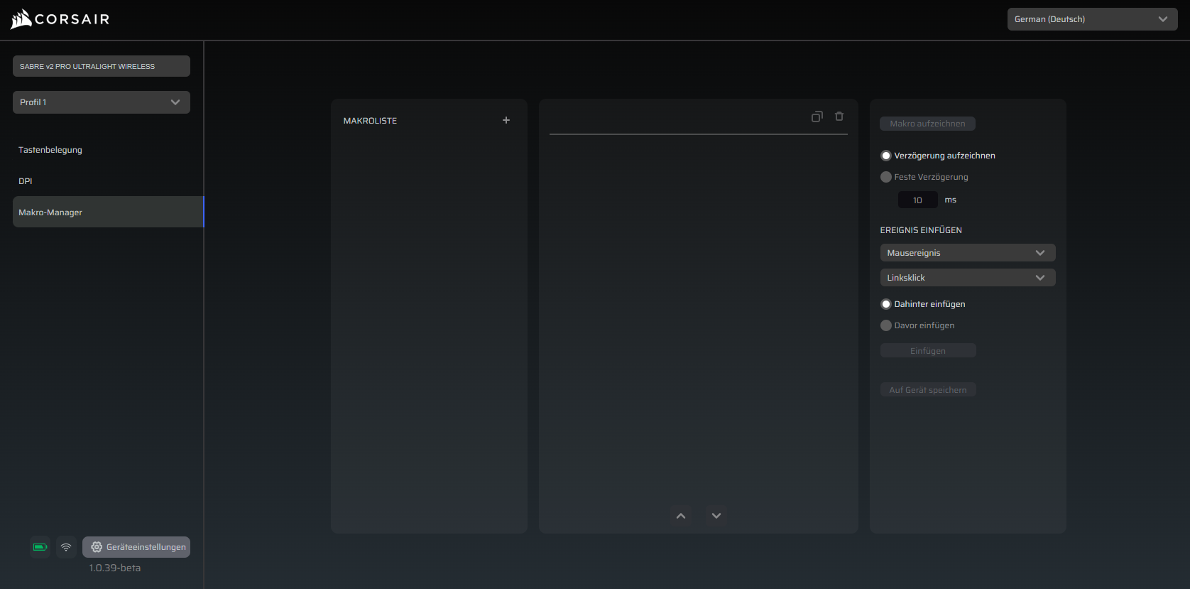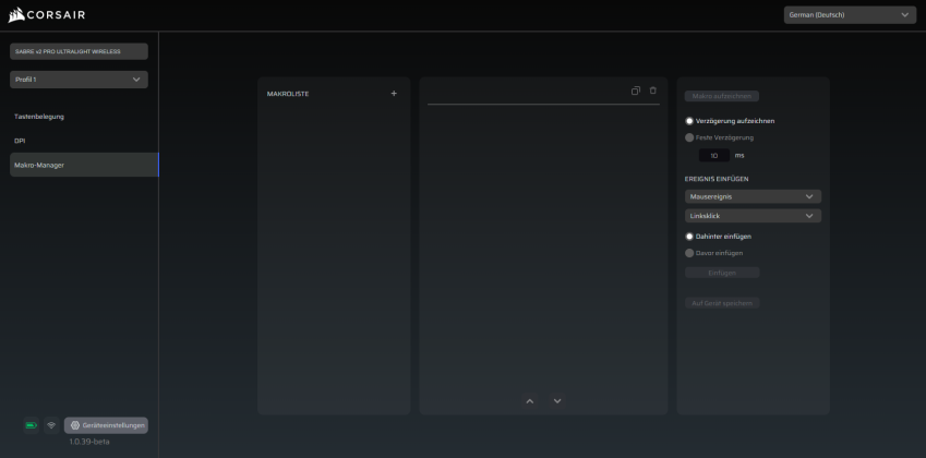 Für die DPI-Einstellungen kann man fünf Stufen in 50 DPI-Schritten einstellen. Standardmäßig ist keine Taste als DPI-Umschalter definiert, das kann man aber individuell nachholen. Über den Makro-Manager schließlich kann man noch eigene Makros erstellen und detailliert anpassen.