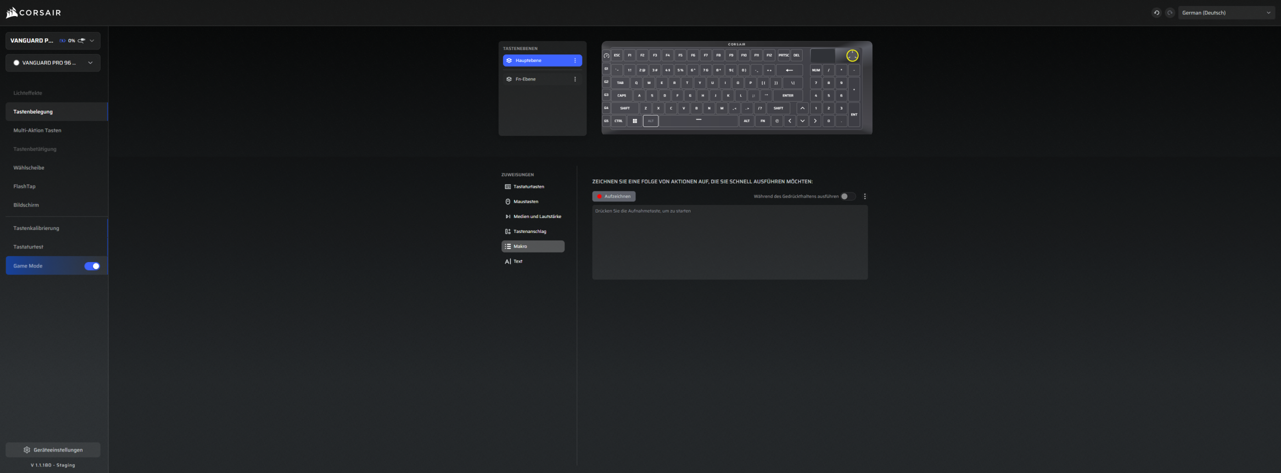 Wie man es von CORSAIR gewohnt ist, übernimmt die hauseigene Software die zentrale Steuerung und Anpassung der Tastatur. Doch hier gibt es eine Änderung und zwar bedarf es keine Installation von iCue, denn alles ist über ein Web Hub erreichbar und konfigurierbar. Über das Web Hub lassen sich nicht nur Beleuchtungseffekte konfigurieren, sondern auch Makros erstellen, Tastenbelegungen ändern und Firmware-Updates einspielen. Besonders praktisch: Zwischen Hardware- und Softwaremodus lässt sich unterscheiden. Während Profile im Softwaremodus unbegrenzt gespeichert werden können, werden im Hardwaremodus die Einstellungen direkt auf der Tastatur gesichert – so bleiben sie auch ohne aktives Web Hub oder an einem anderen PC nutzbar.