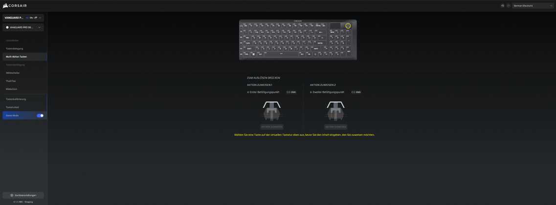 Ein zentrales Feature dieser Tastatur ist die Feineinstellung der Tastenbetätigung. In diesem Bereich lassen sich Betätigungsweg, Rapid-Trigger-Funktion, Rücksetzpunkt sowie doppelte Betätigungen konfigurieren – ein Alleinstellungsmerkmal, auf das wir gleich noch genauer eingehen.