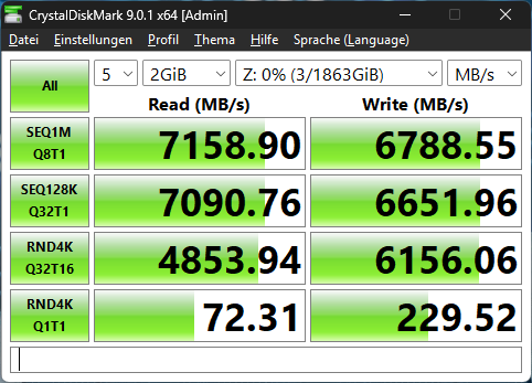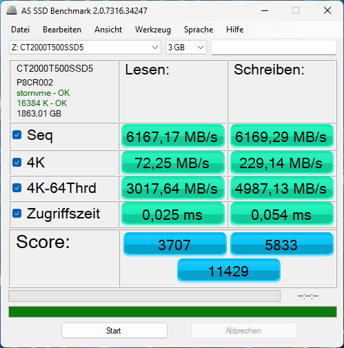 | Crucial T500 2TB | Seq. Lesen | Seq. Schreiben |