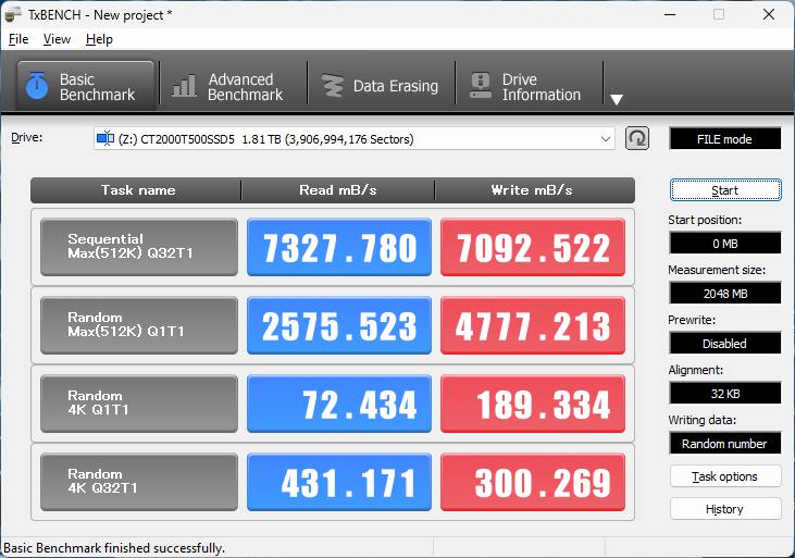 Das Geschwister-Tool von CrystalDiskInfo prüft die Leistung von HDDs und SSDs sowohl sequentiell als auch zufällig. Dabei kann die Zusammenstellung der jeweiligen Tests angepasst werden. - TxBench: