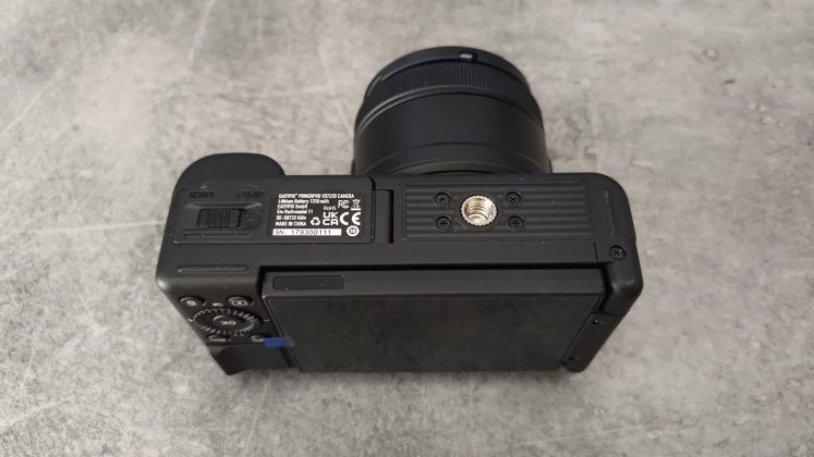 Das Gehäuse besteht aus robustem Kunststoff, wirkt sauber verarbeitet und bietet einen guten Kompromiss aus Stabilität und Mobilität. Der Griffbereich ist leicht gummiert, was ein sicheres Handling ermöglicht. Ein Standard-Stativgewinde ist vorhanden, ebenso wie ein Anschluss für ein externes Mikrofon und einen Blitzschuh – in dieser Preisklasse keine Selbstverständlichkeit.
